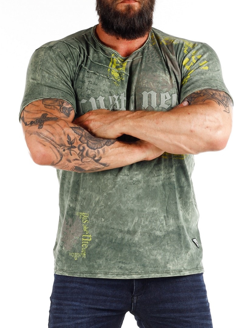 Grön t-shirt med vanlig passform och rundad hals i cool design med grova sömmar och textprint på framsidan. Den är gjord i ett stretchigt bomullsmaterial med råa kanter och patch med loggan syns vid linningen nertill. Finns i flera färger!