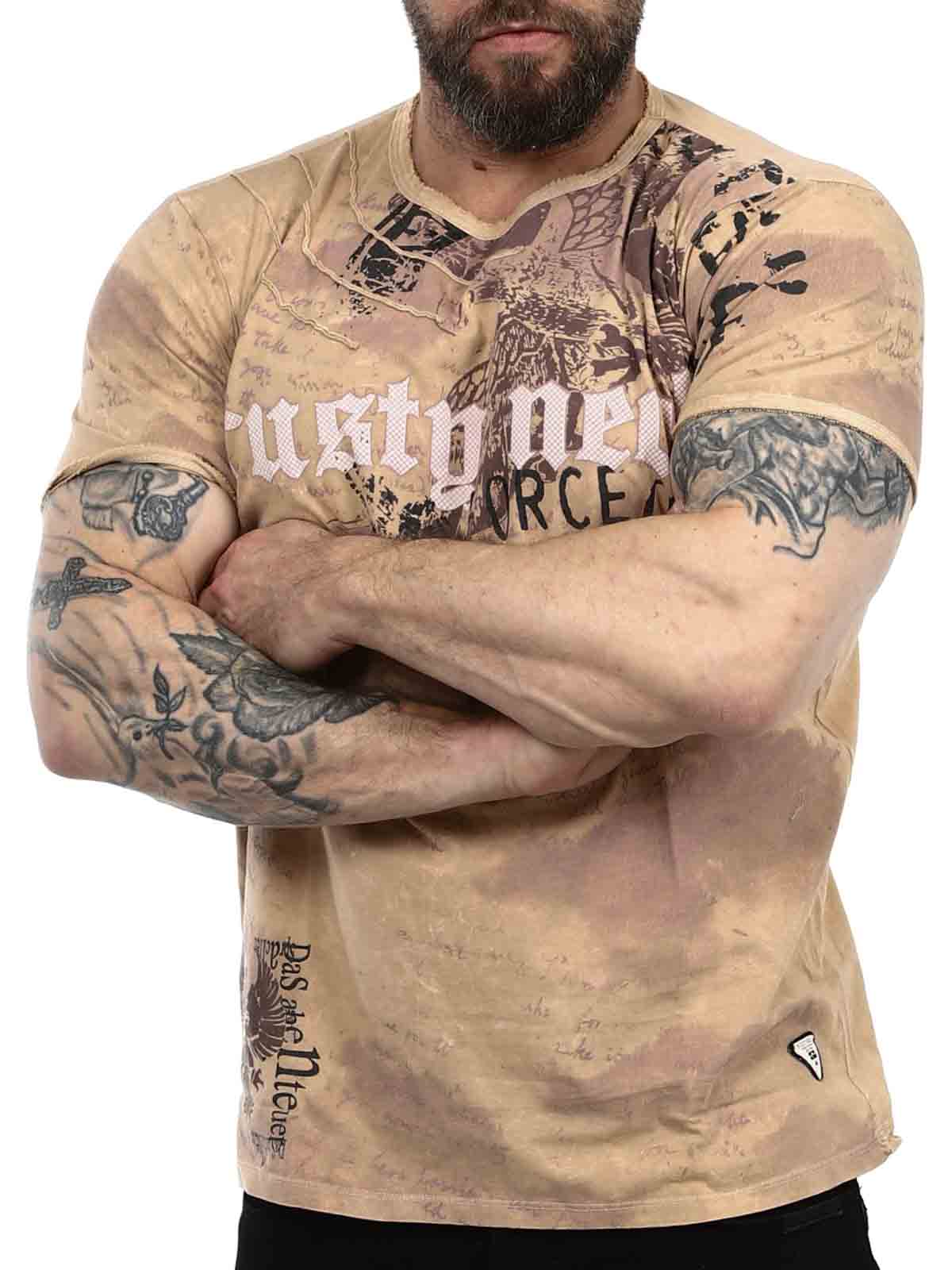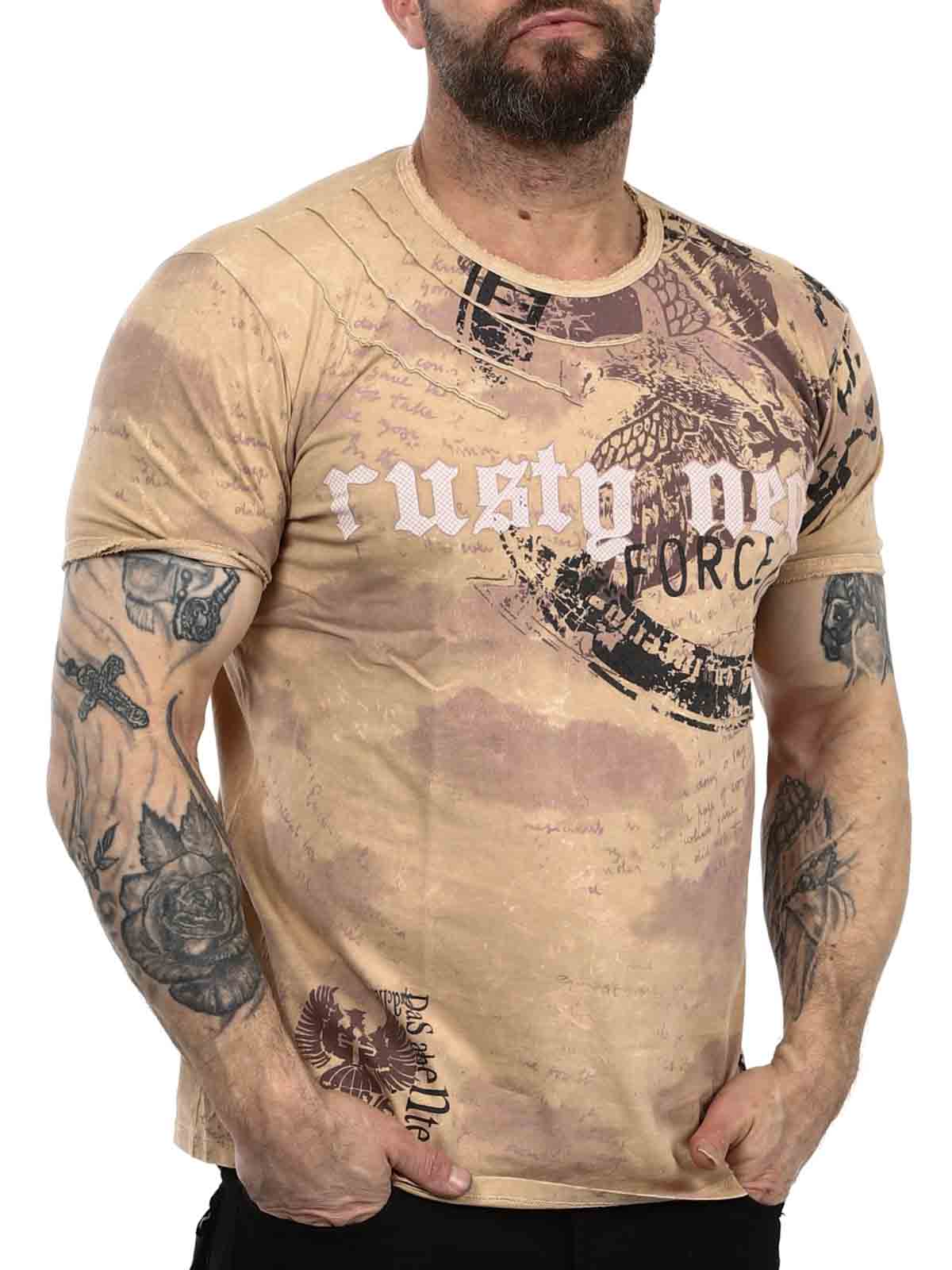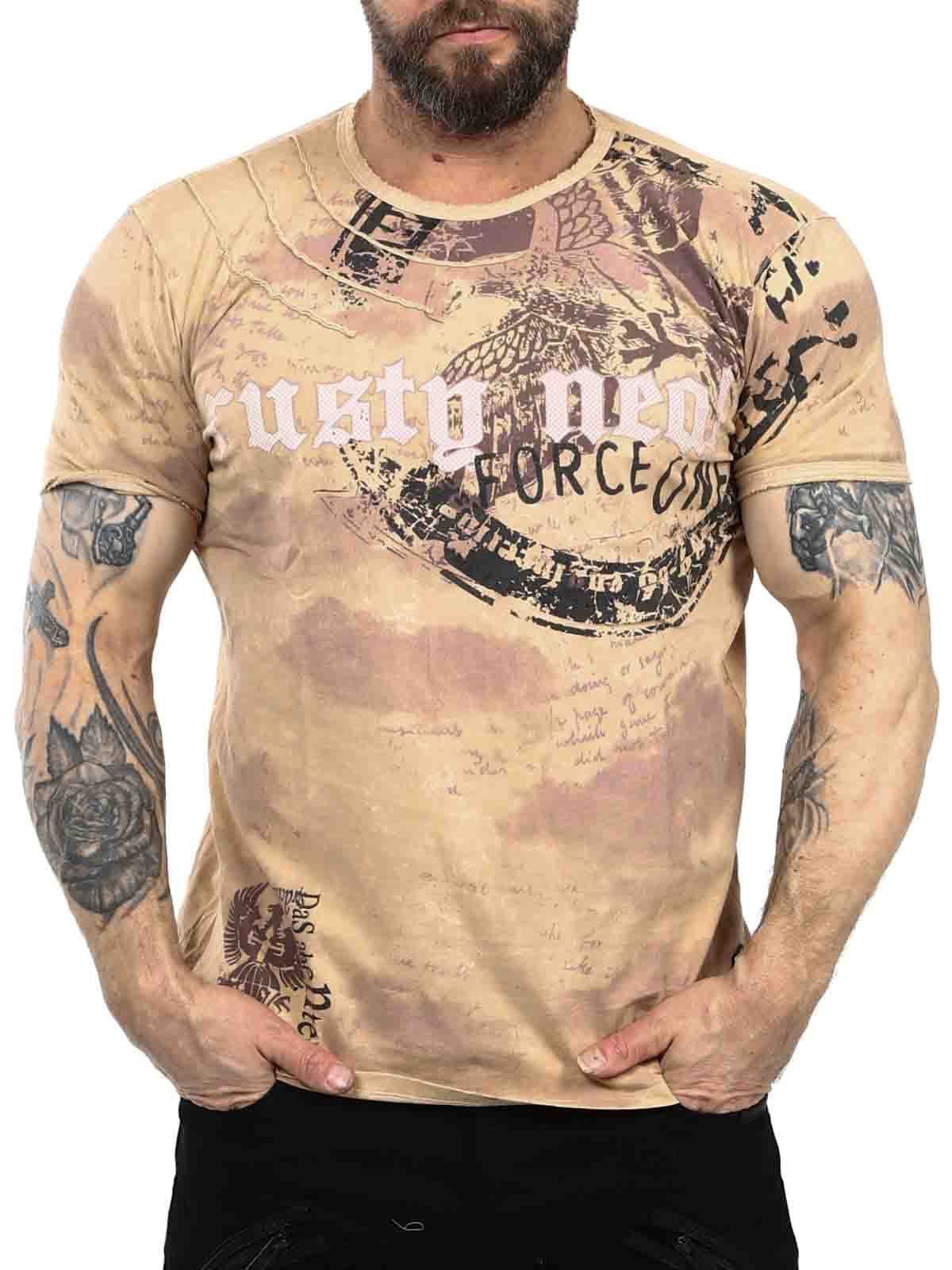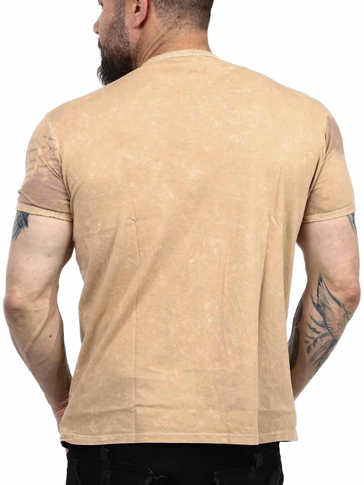 Orange t-shirt med rundad hals, mörkare färgnyanser och svarta tryck på framsidan. Producerad i ett stretchigt bomullsmaterial med råa kanter och den har en patch med logga nere vid linningen.