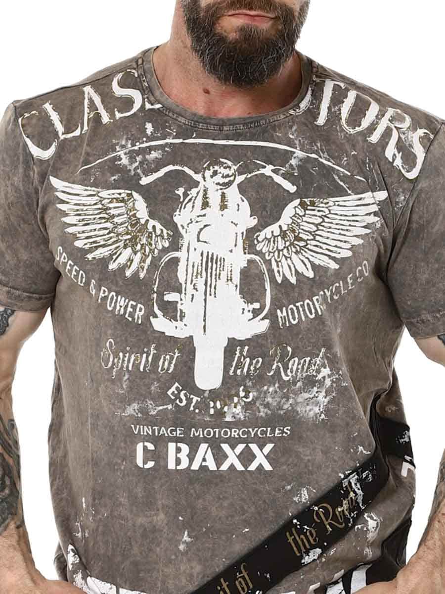 Snygg t-shirt i tunt och stretchigt material. Tufft designad med bikertryck och sömmar. Rundad halsöppning.