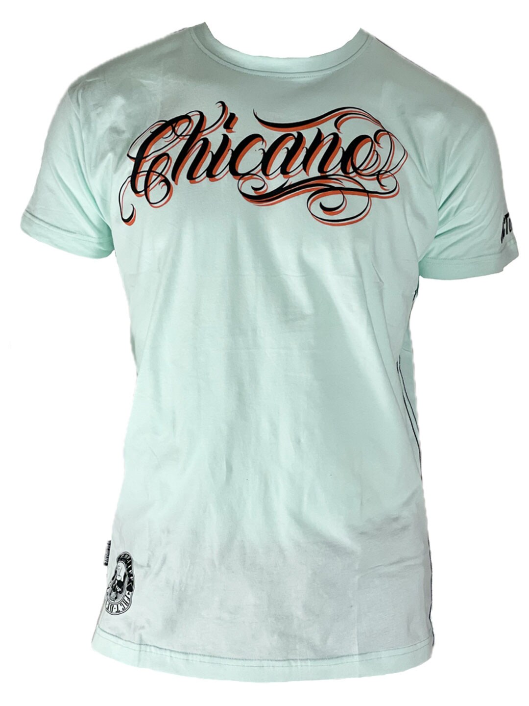 En t-shirt med tydlig streetattityd och stora grafiska tryck fram och bak. Den ljusa basen kombineras med “Chicano”-text på bröstet och ett stort, detaljrikt ryggmotiv. Perfekt för dig som vill bära en t-shirt som verkligen sticker ut och sätter tonen för hela outfiten!