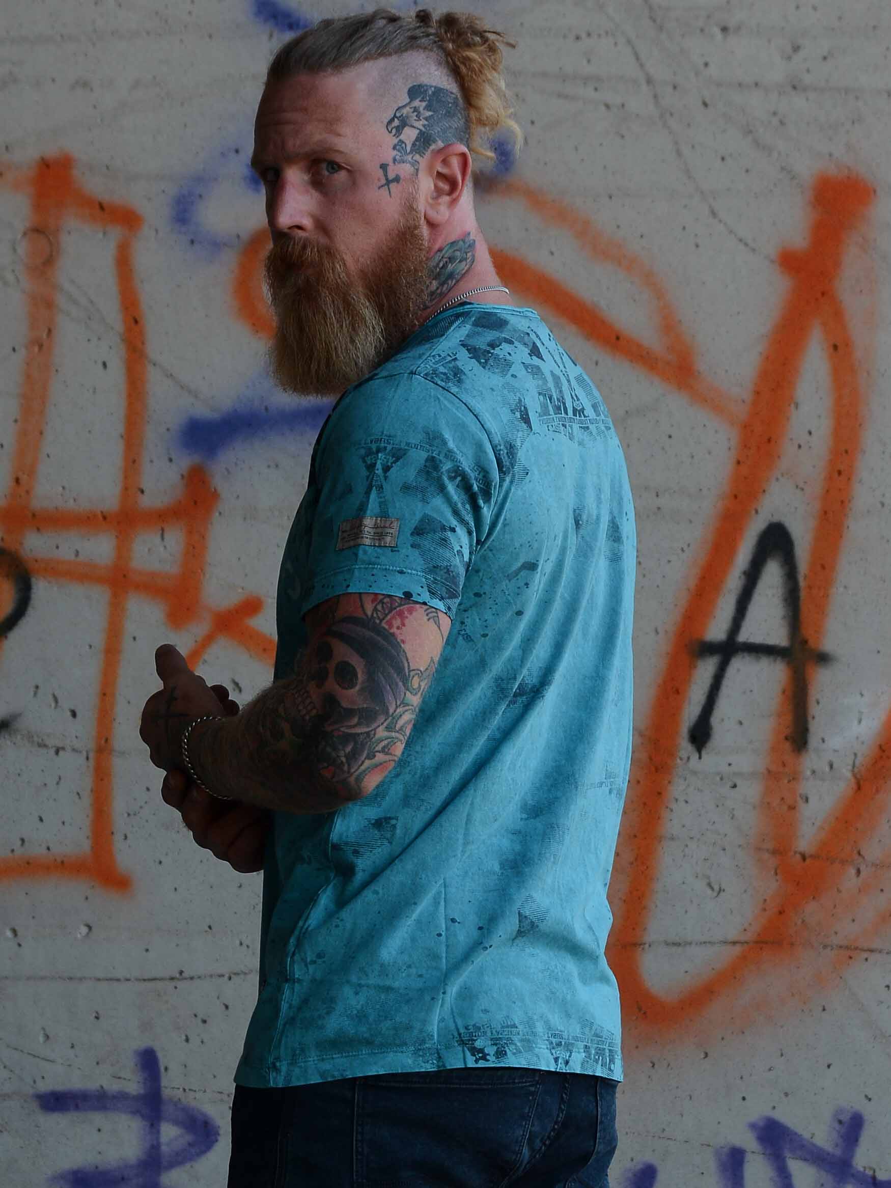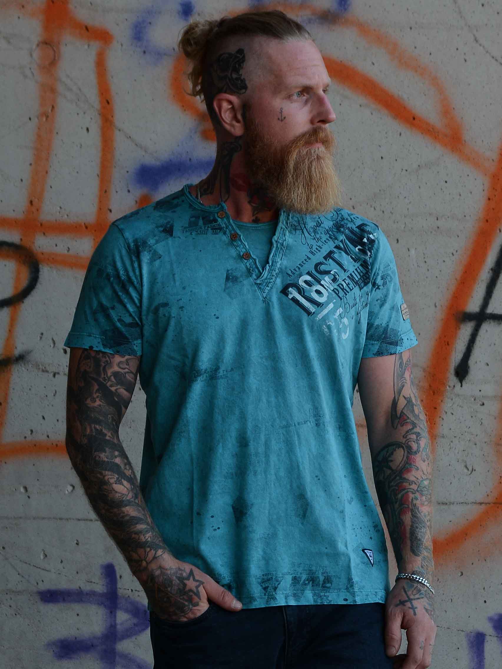 Mönstrad t-shirt detaljerad med knappar fram vid halsöppningen, en tygpatch med logga på vänster ärm och en vid linningen nertill. Tillverkad i mjuk och stretchig bomull som gör att den sitter skönt på kroppen!
