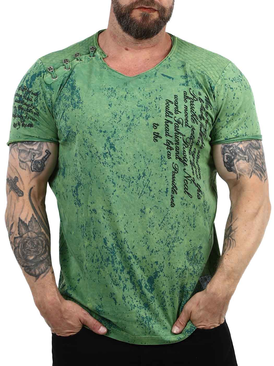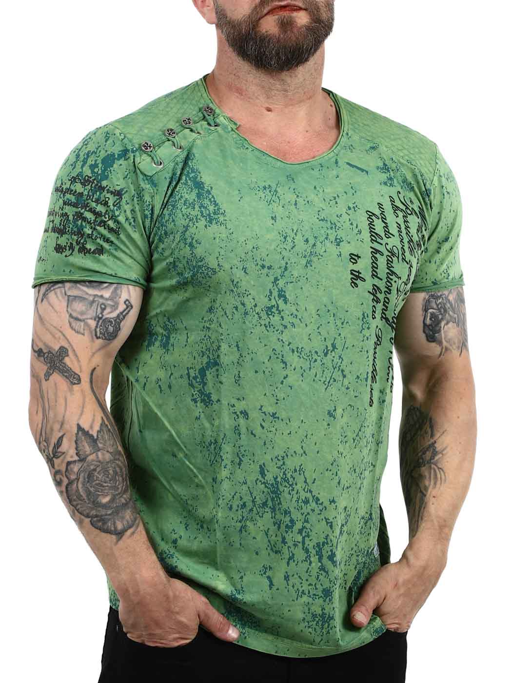 Grön t-shirt med knäppning från Rusty Neal