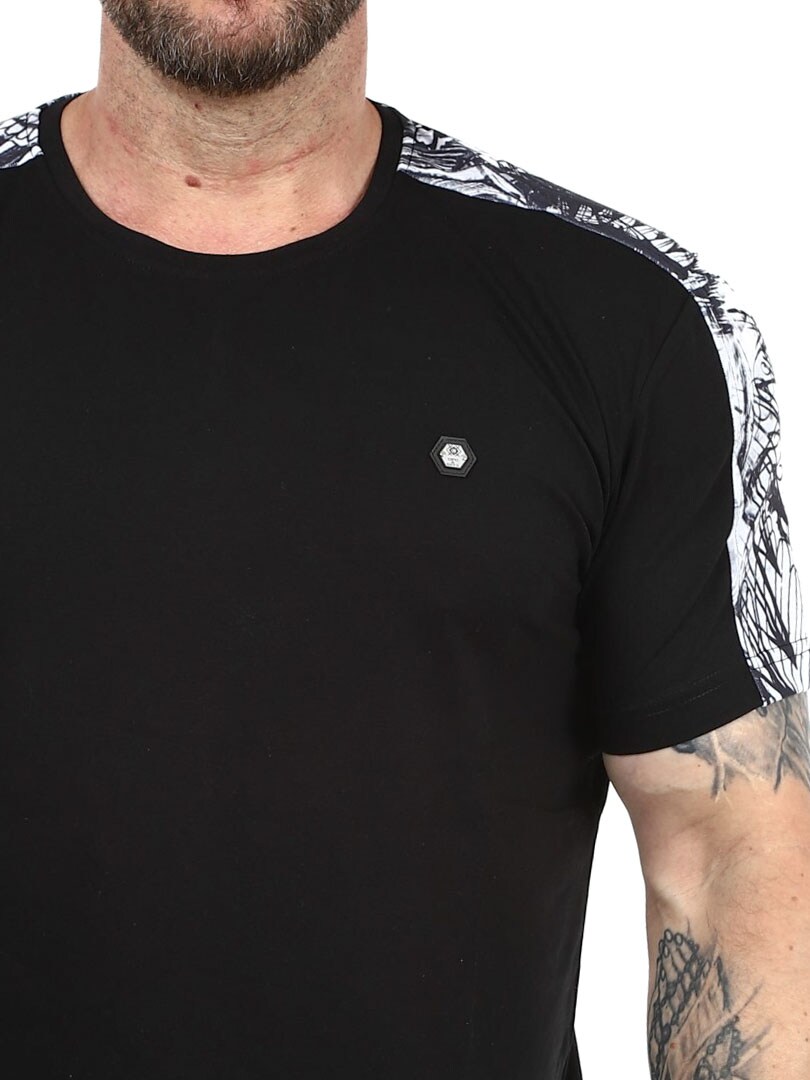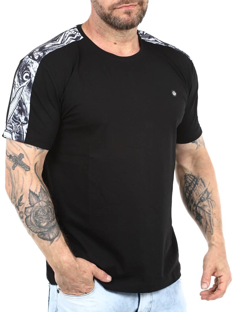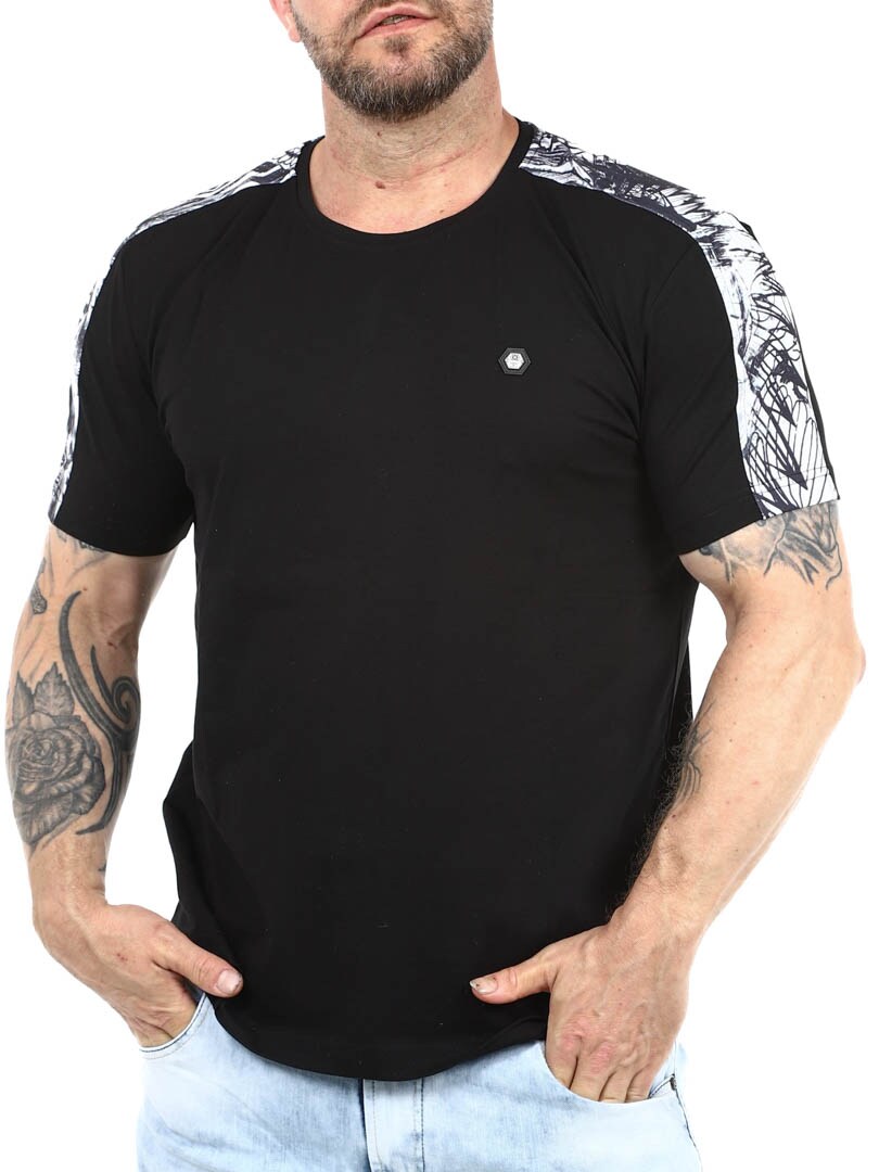 Snygg t-shirt med grafiskt mönster på axlarna som ger en edgy twist. Den har klassisk passform med rundad hals. Tillverkad i en bekväm och stretchig bomullsmix.