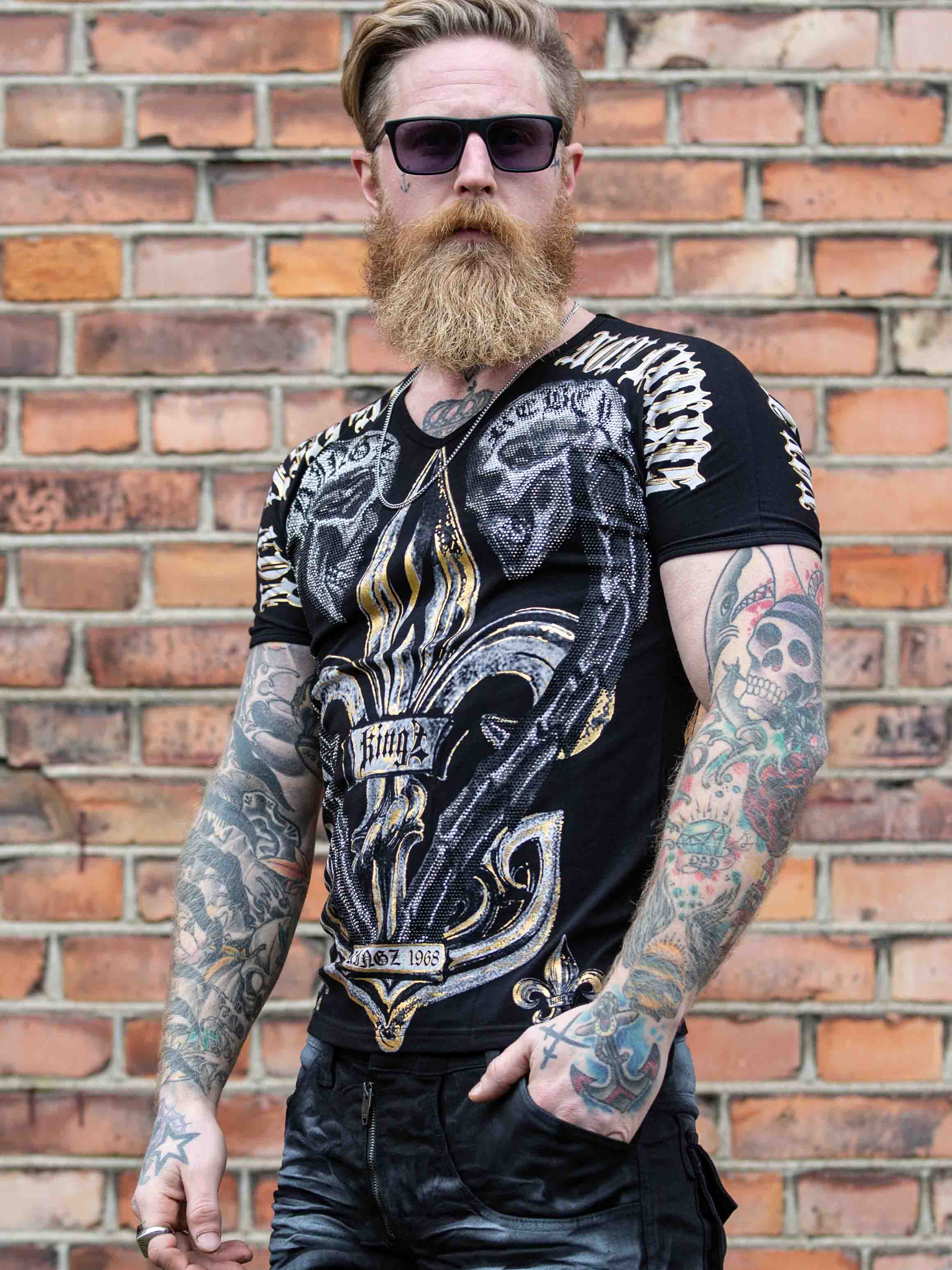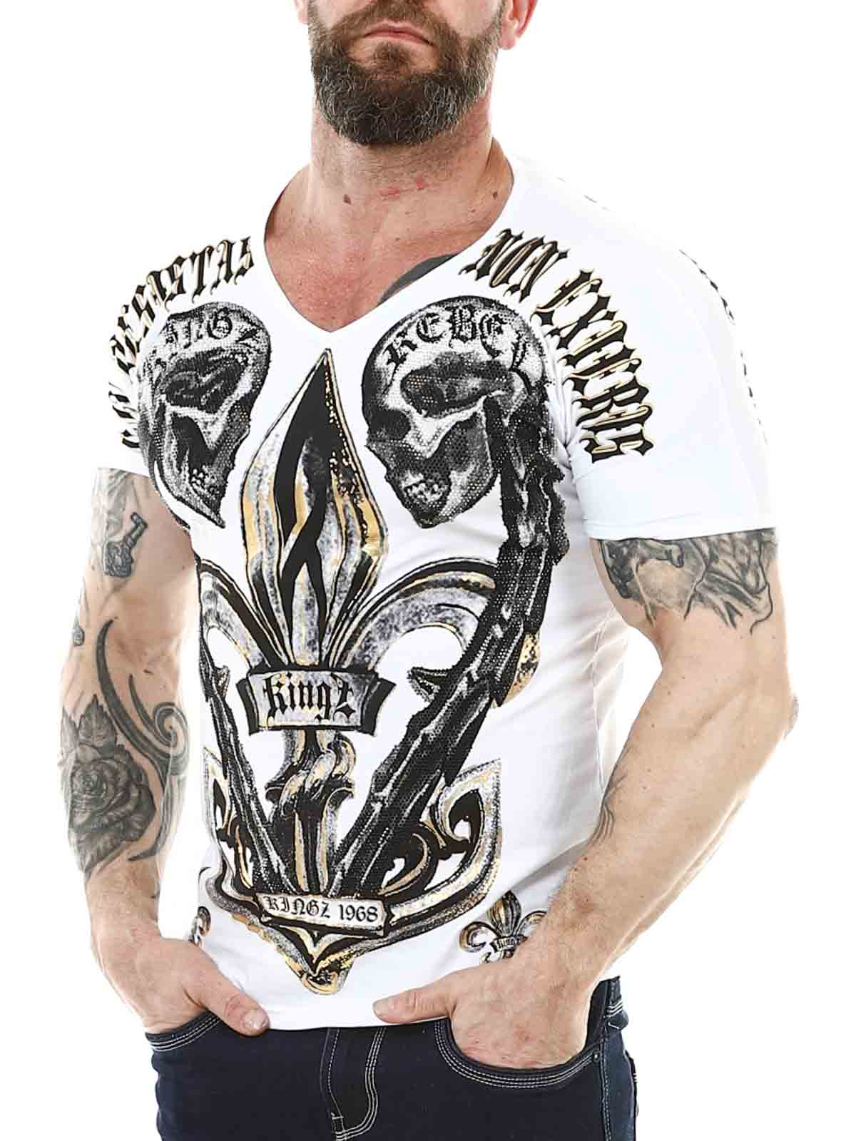 V-ringad t-shirt med tryck och stenar. Producerad i bekvämt bomullsmaterial med slimmad passform. Denna coola t-shirt är för dig som vill sticka ut från mängden!