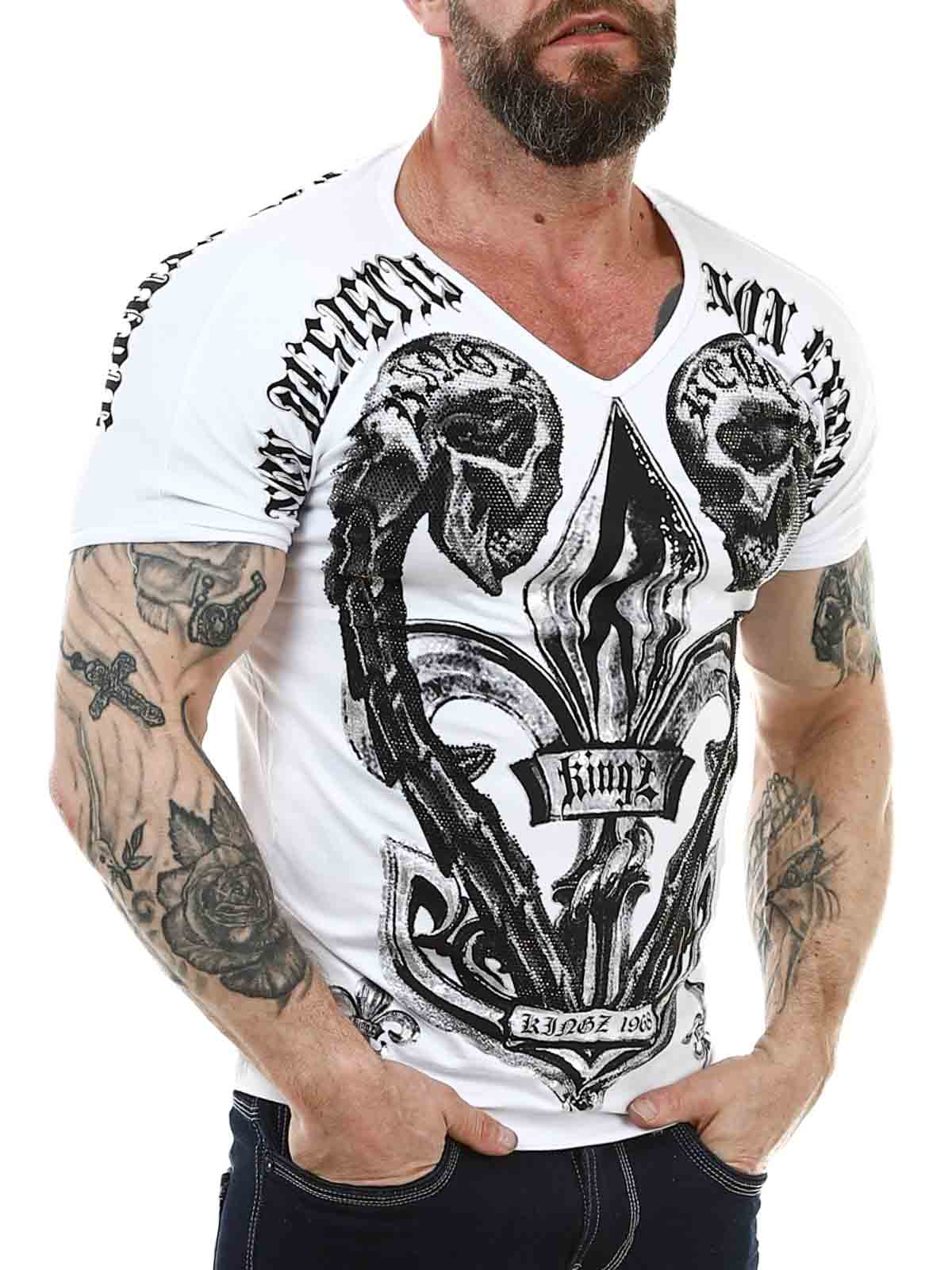 V-ringad t-shirt med tryck och stenar. Producerad i bekvämt bomullsmaterial med slimmad passform. Denna coola t-shirt är för dig som vill sticka ut från mängden!