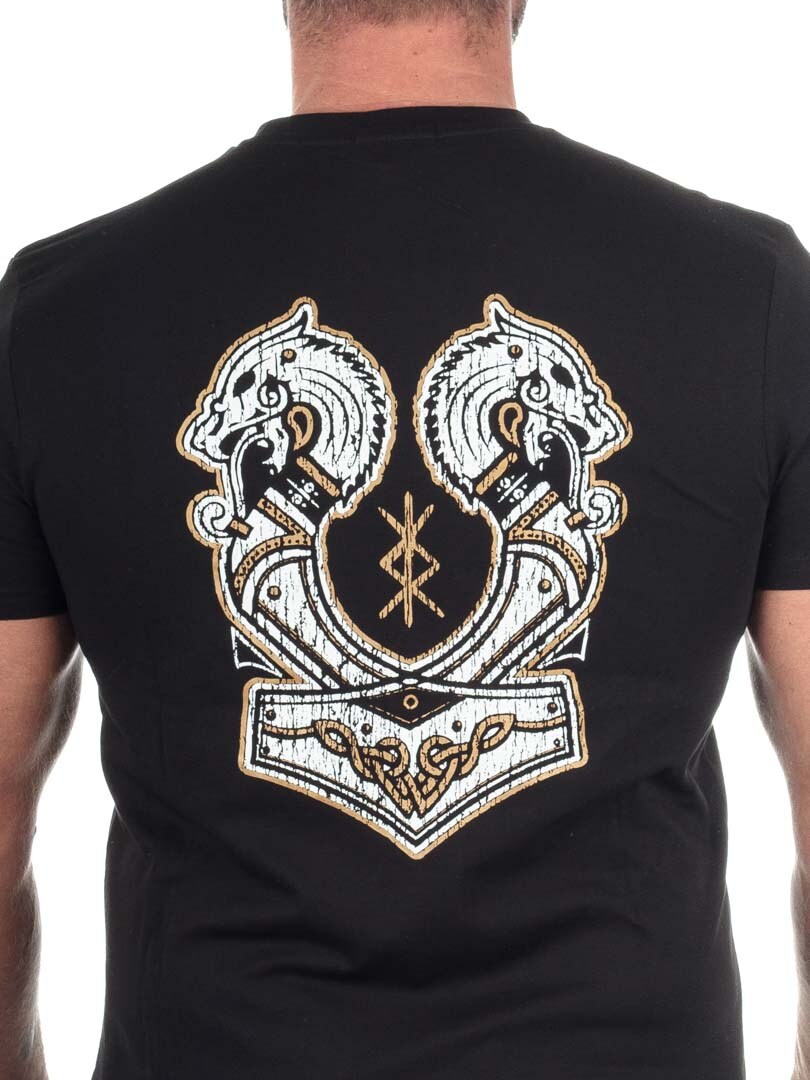 RockDenim RD Stormgrim T-shirt i svart är en distinkt tröja med ett kraftfullt vikingainspirerat tryck och klassisk design.