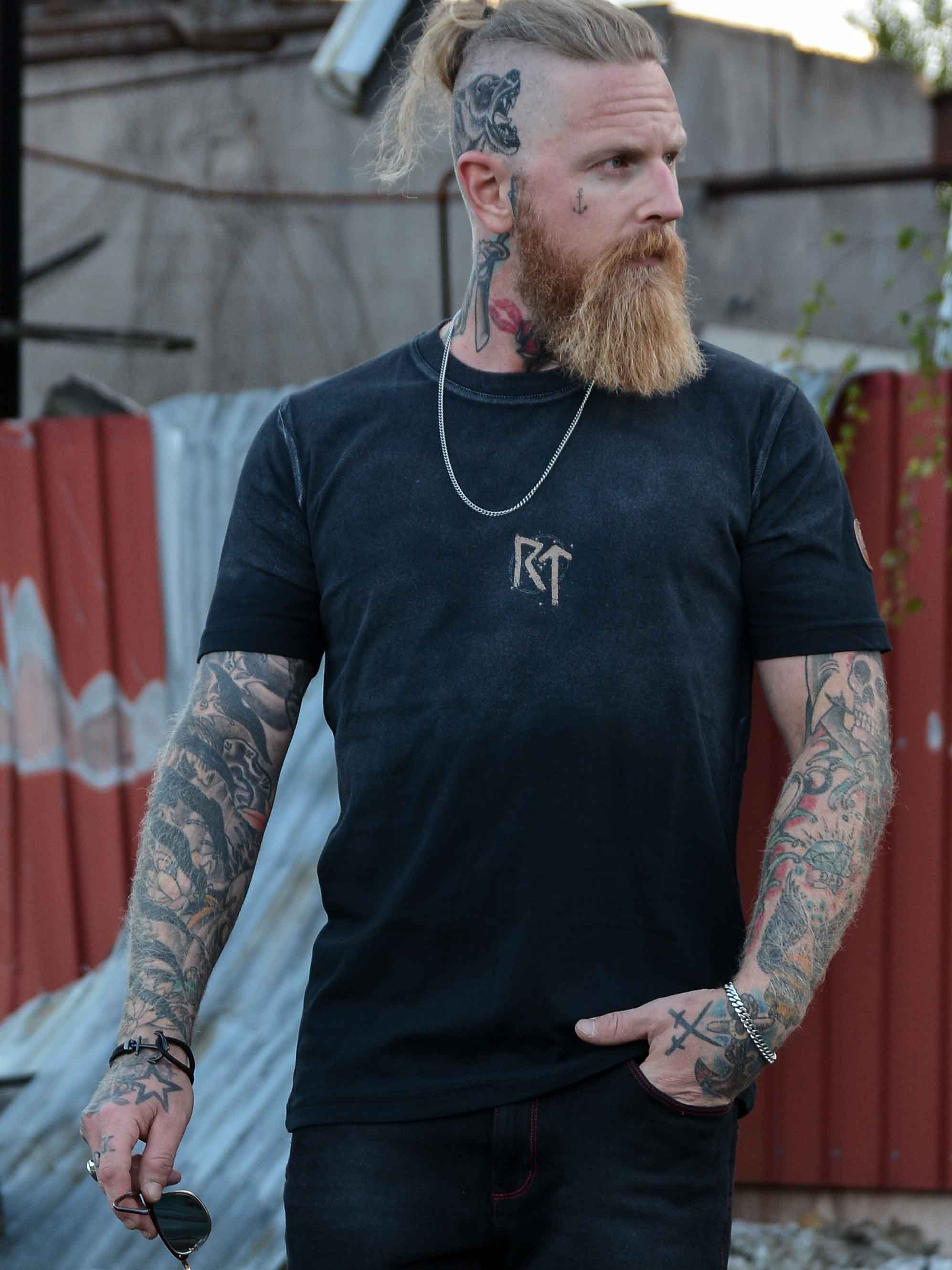 ⚔ På detta plagg finner du ett särskilt runemblem med Raido ᚱ och Tiwaz ᛏ – runor som leder vägen framåt, med Tyrs beskydd och styrkan att följa resan med mod och rättvisa. ⚔