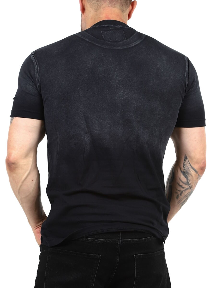 Den här t-shirten tar ett klassiskt svart plagg till nästa nivå. Med en ljusare övergång upptill skapas en modern gradient-effekt som ger liv åt designen utan att bli för mycket. Tillverkad i en klassisk passform med rundad, ribbad halsringning för maximal komfort. Finns endast hos Rockdenim!