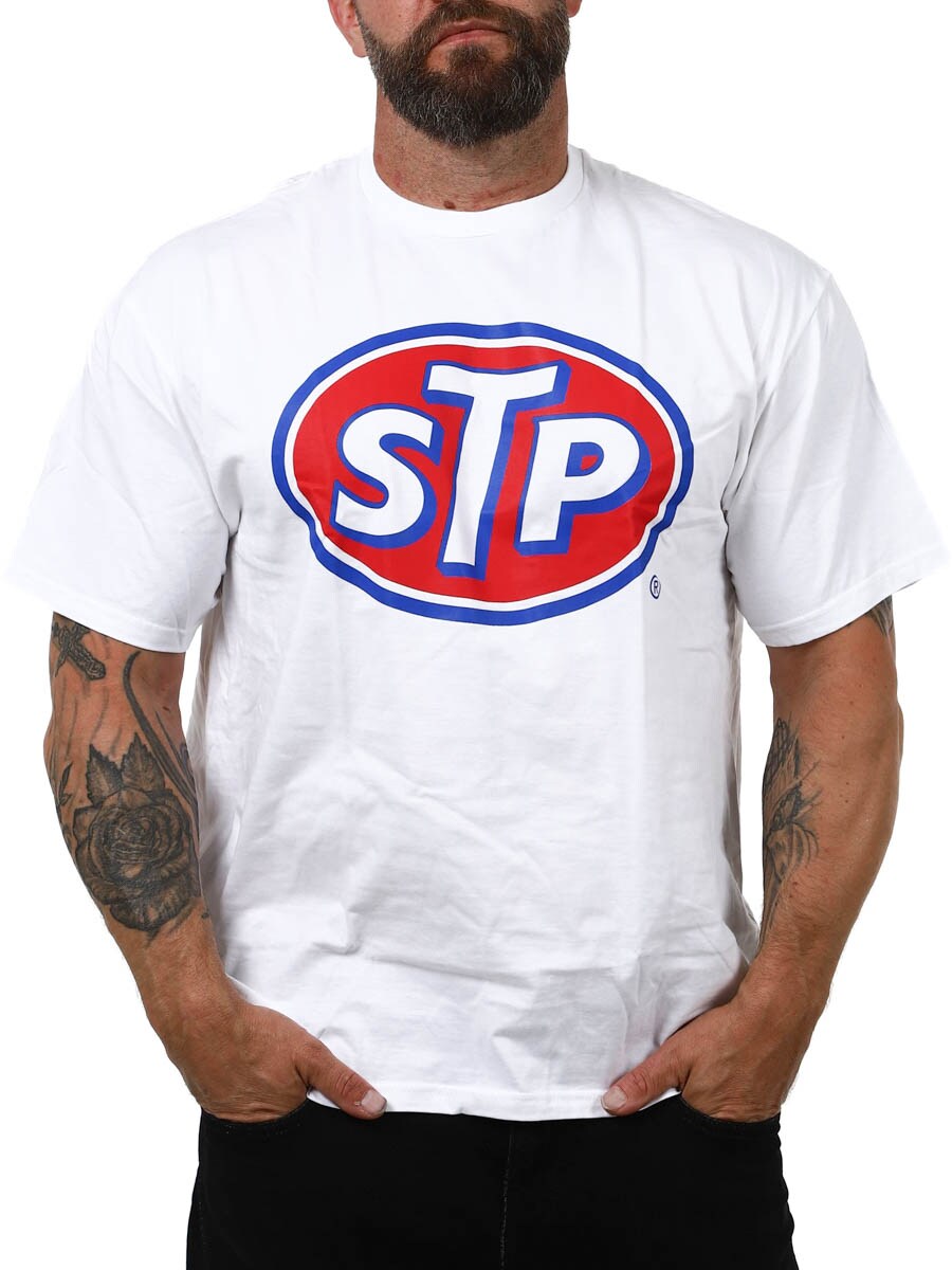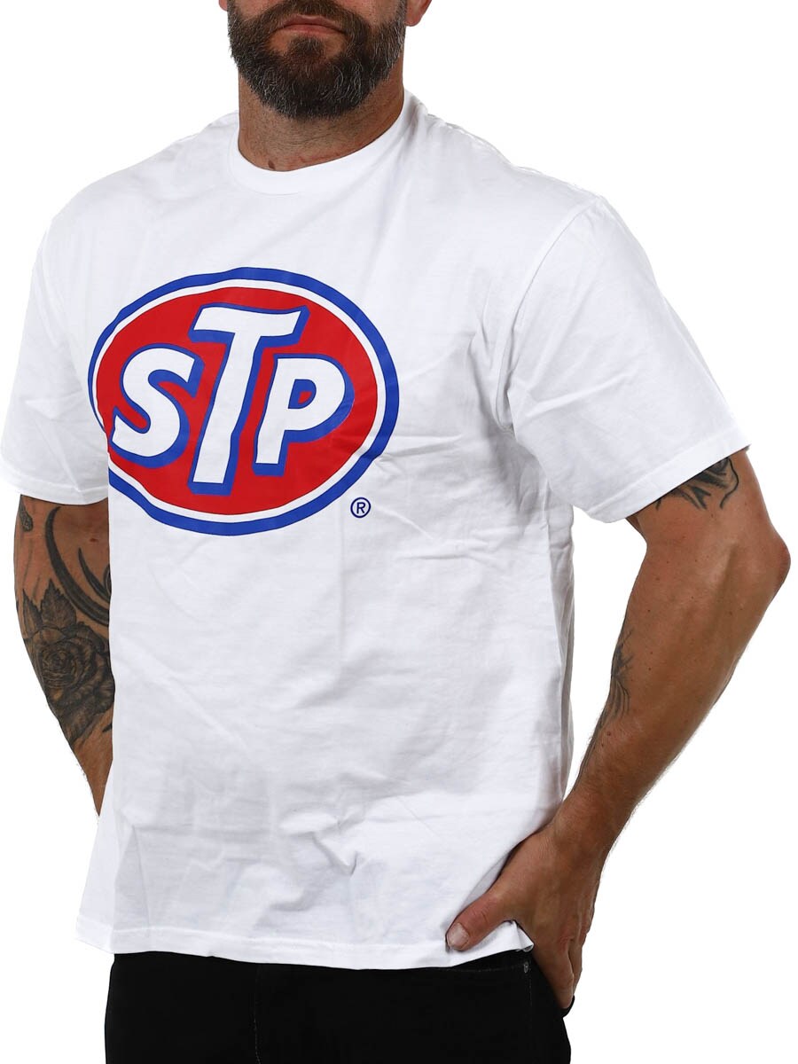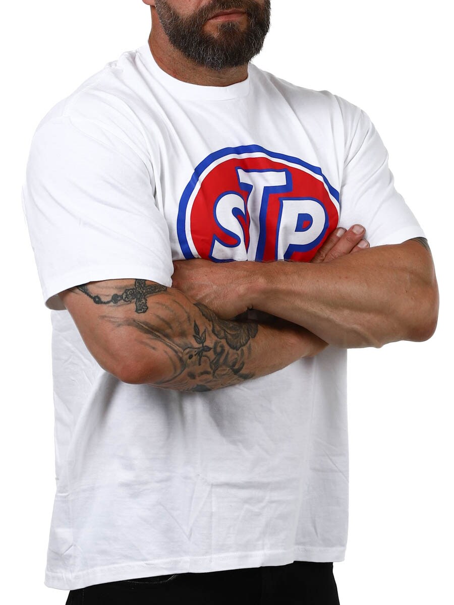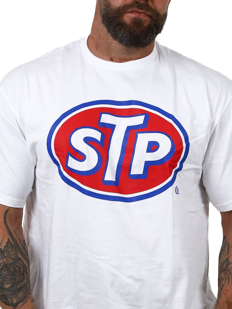 Den här vita t-shirten med klassiskt STP-tryck framtill är ett måste för dig som gillar retro, racing och autentisk amerikansk stil. Den har klassisk passform och rundad halsöppning.