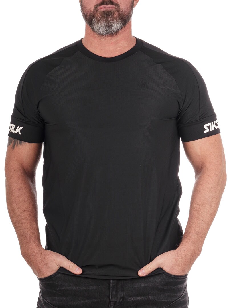 Möt t-shirten som fungerar lika bra på gymmet som i vardagen. Den svarta färgen kombinerat med den ikoniska loggan på ärmsluten ger tröjan en modern och sportig estetik. Tillverkad i ett lätt, följsamt och snabbtorkande material erbjuder tröjan optimal rörelsefrihet och ventilation. Passformen är atletisk och sitter snyggt utan att kännas tight.