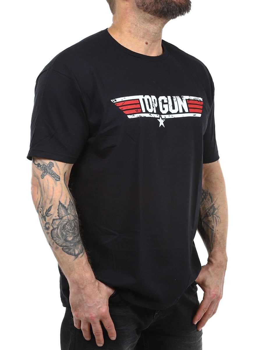 Den här svarta t-shirten med Top Gun-motiv är ett måste för alla fans av klassisk actionfilm och ikonisk 80-talsstil. Den har klassisk passform och rundad halsöppning. Tillverkad i 100% bomull.