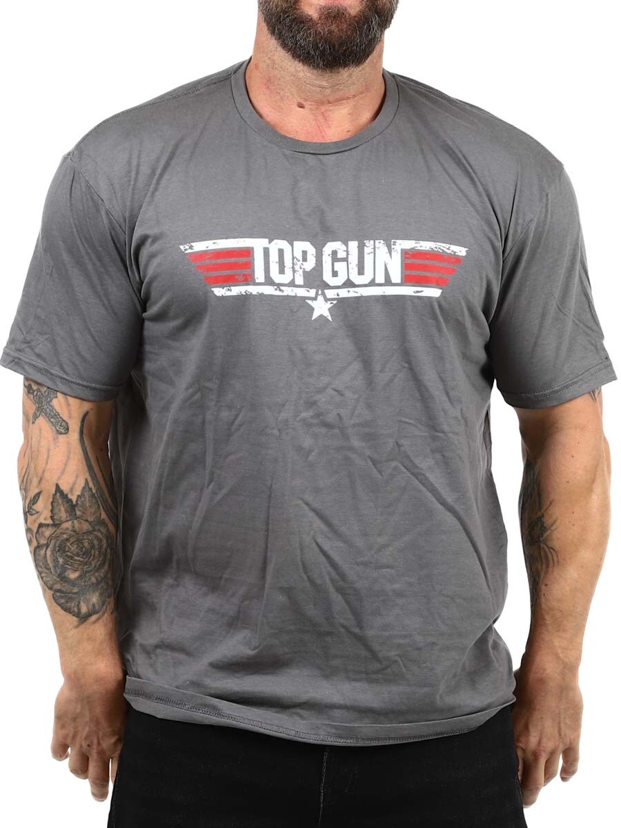 Den här grå t-shirten med Top Gun-motiv är ett måste för alla fans av klassisk actionfilm och ikonisk 80-talsstil. Den har klassisk passform och rundad halsöppning. Tillverkad i 100% bomull.