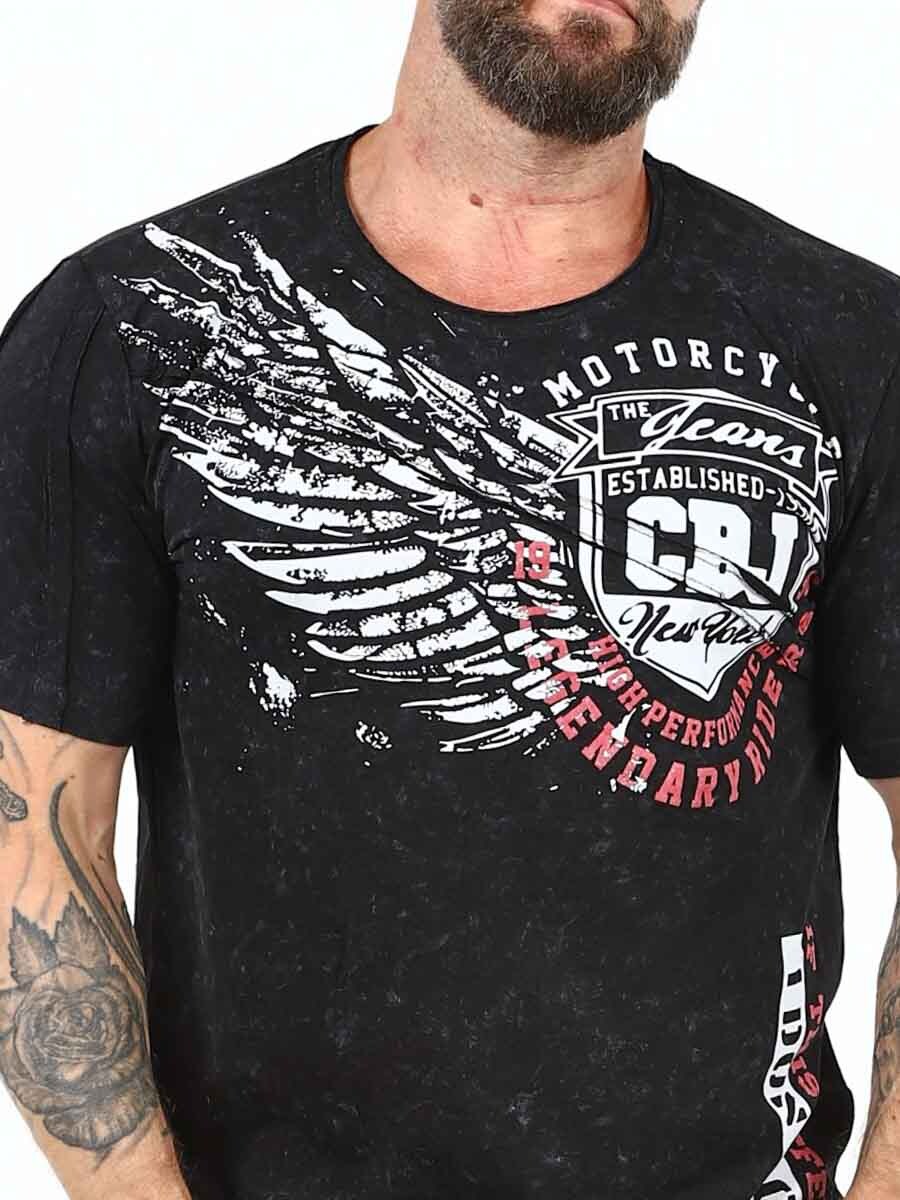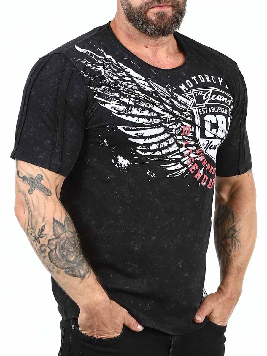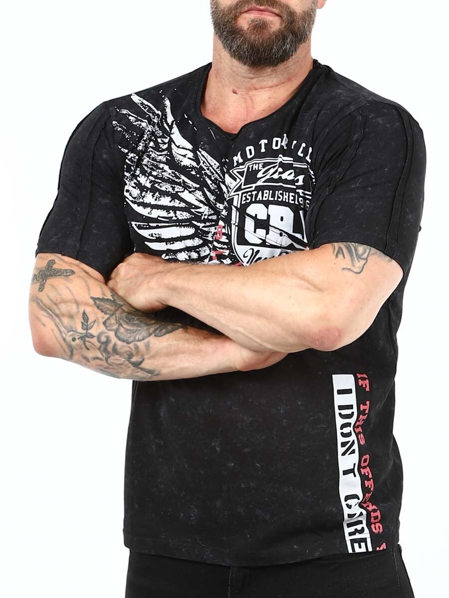 Snygg t-shirt med rundad halsöppning som har råa kanter. Designad med tufft tryck som utstrålar en självsäker stil och rebellisk attityd. Tillverkad i ett mjukt och stretchigt material.