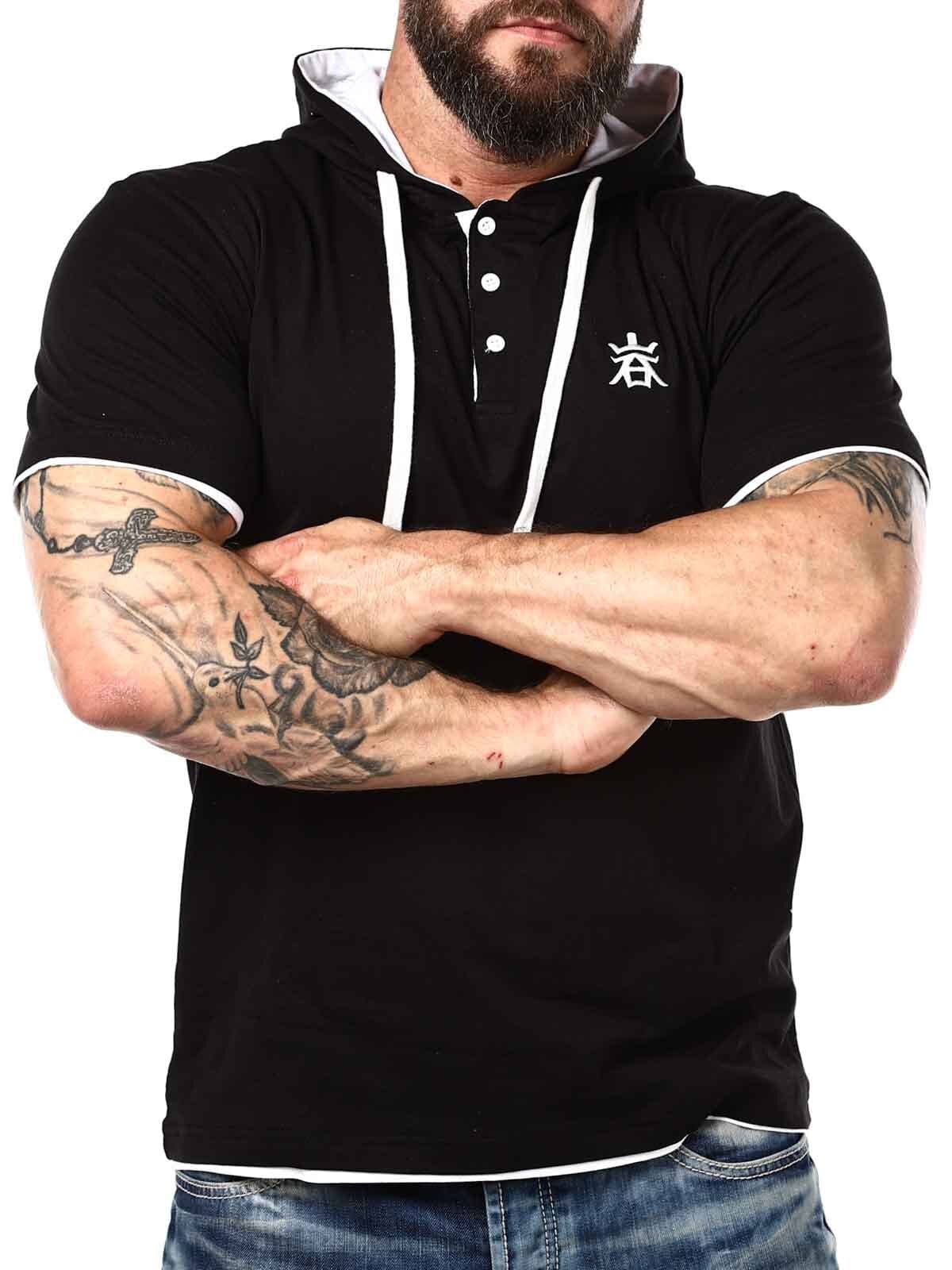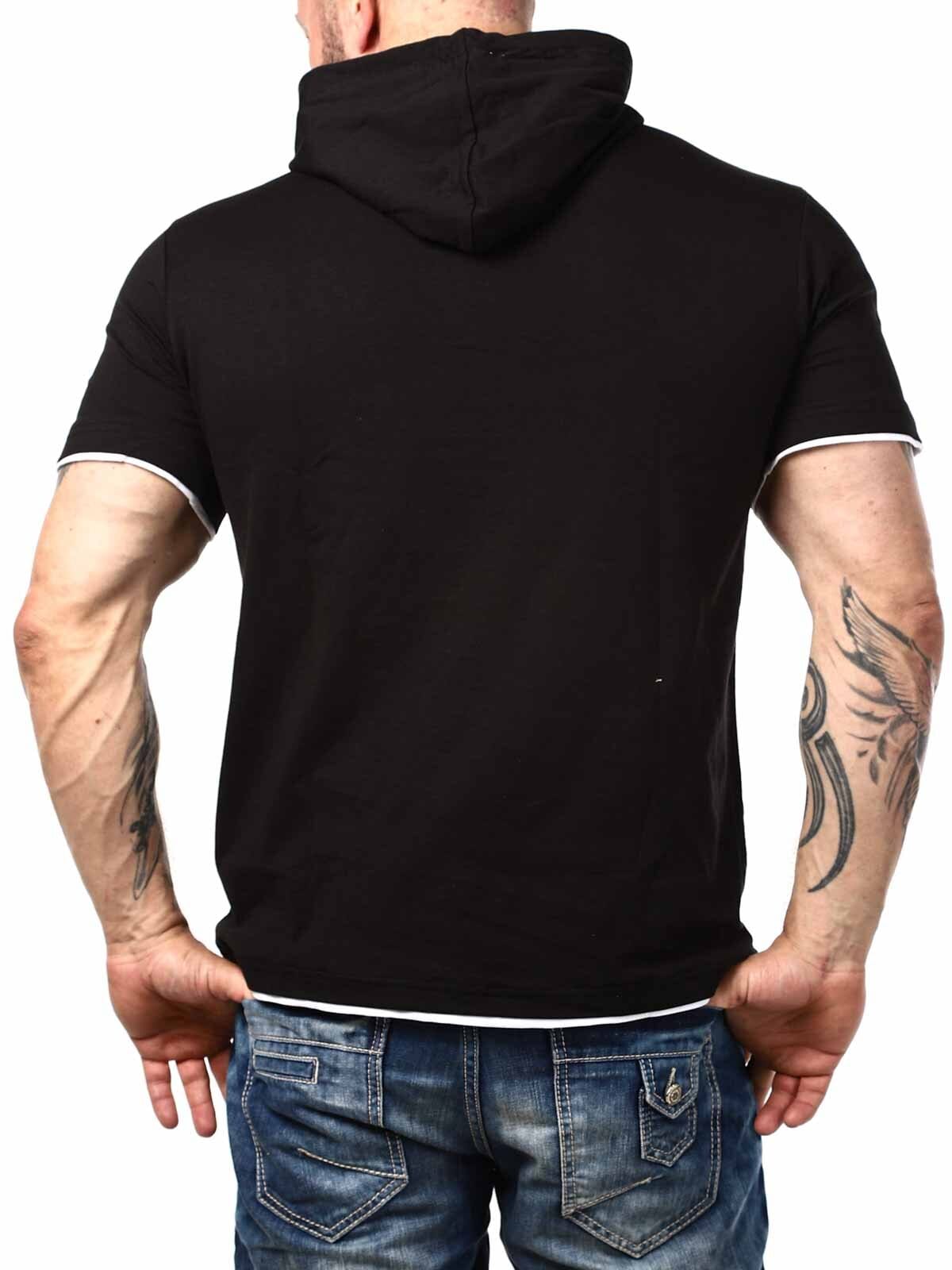Svart t-shirt med vita detaljer. Den har klassisk passform och är designad med huva och knappöppning framtill. Denna unika t-shirt hittar du endast hos RockDenim!