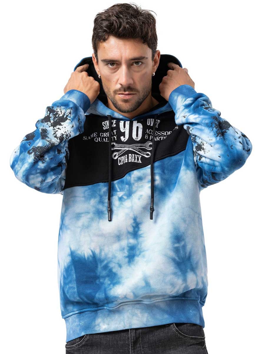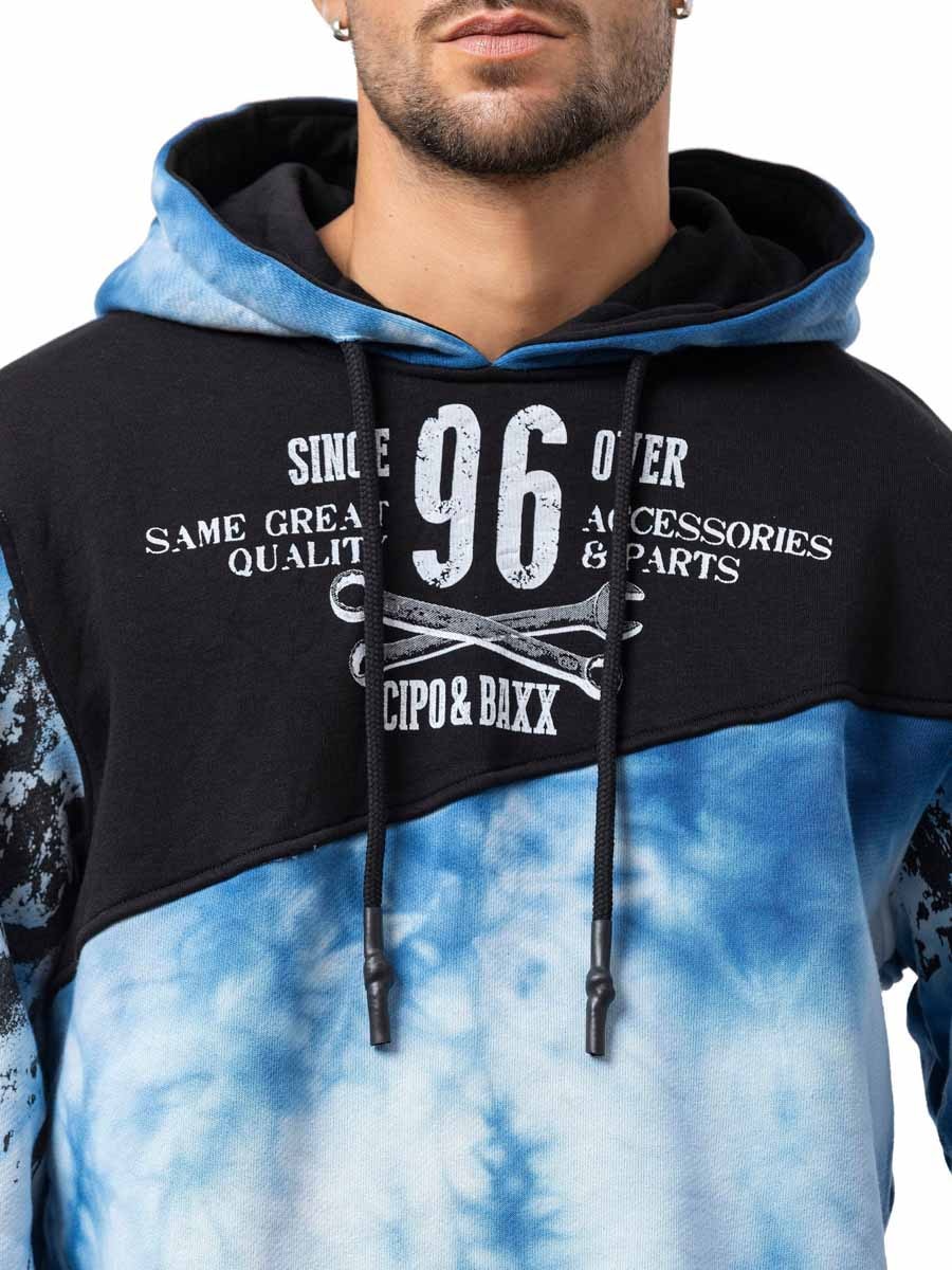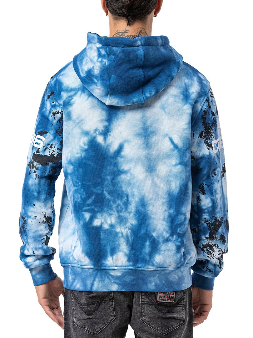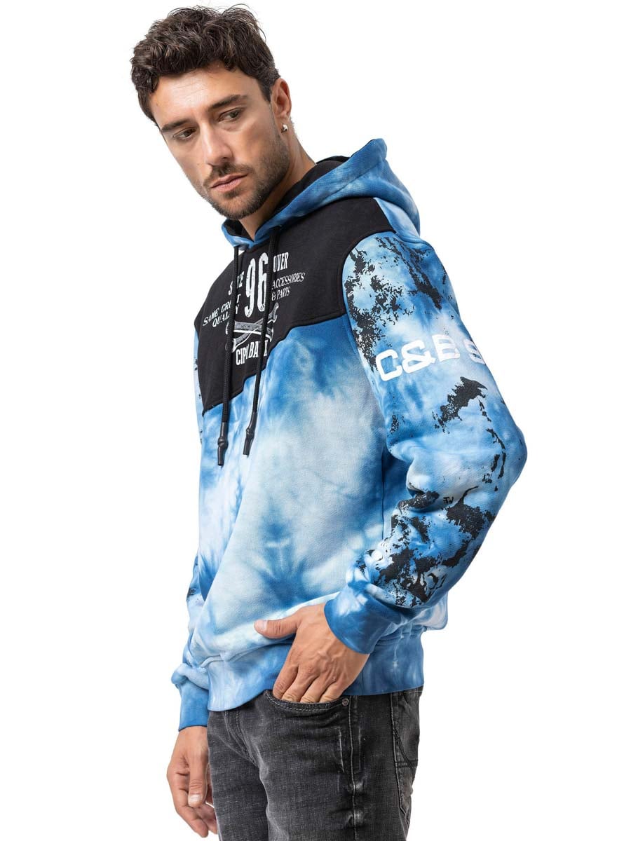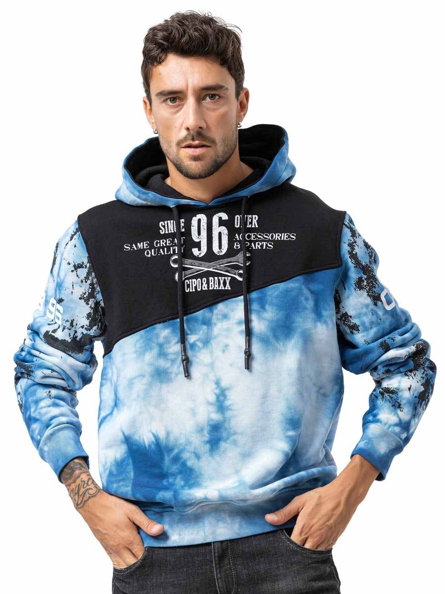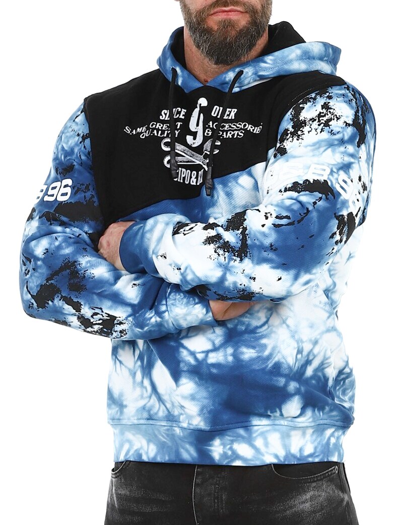 Tröjan har en uttrycksfull och modern design med ett abstrakt mönster som ger ett rått intryck. Den har klassisk passform, huva med snörning och ribbad mudd i avsluten. Ett mångsidigt plagg som kombinerar ren komfort med tidlös design.
