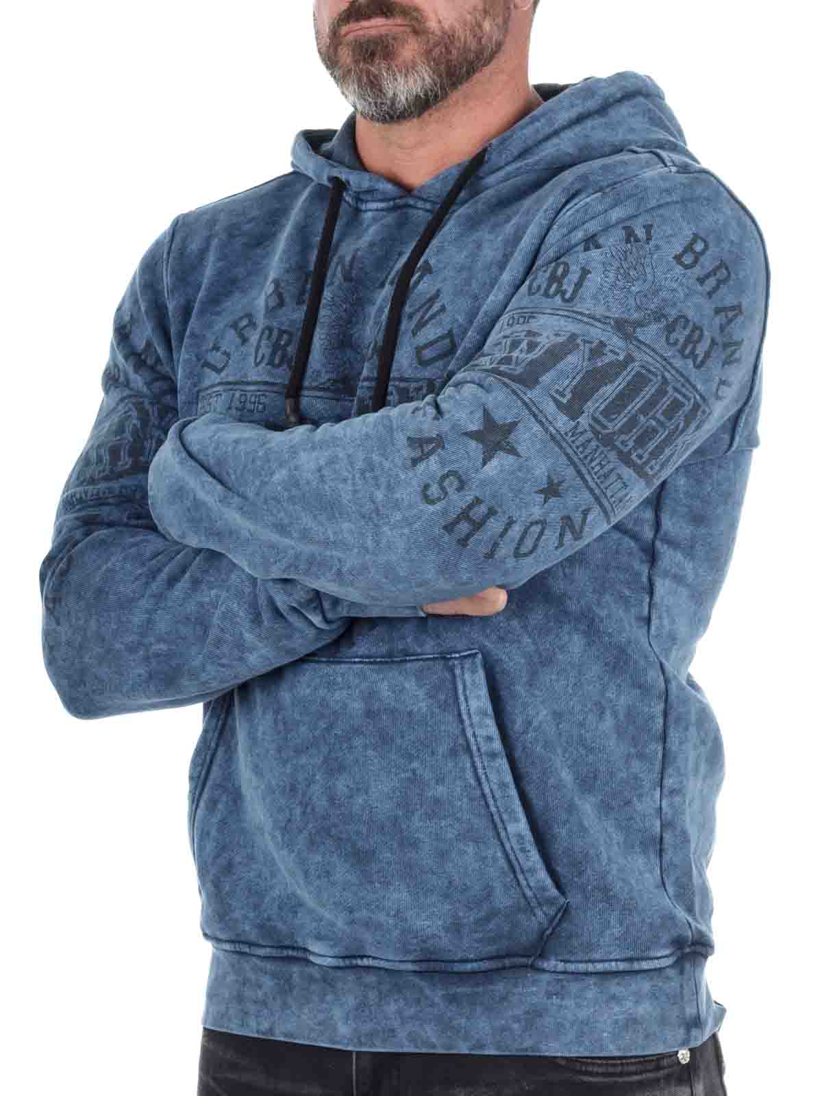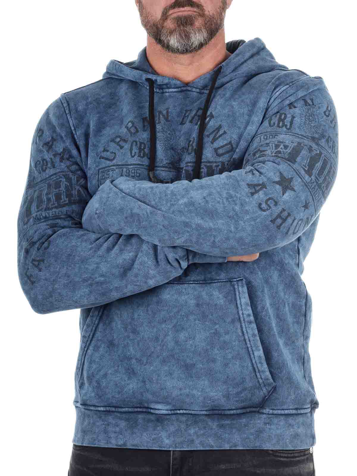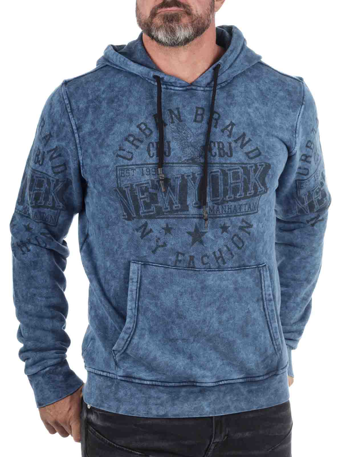 Huvtröja med tvättad look och New York-tryck. Den har justerbar huva, känguruficka och ribbade muddar för en bekväm passform. Tillverkad i 100% bomull.