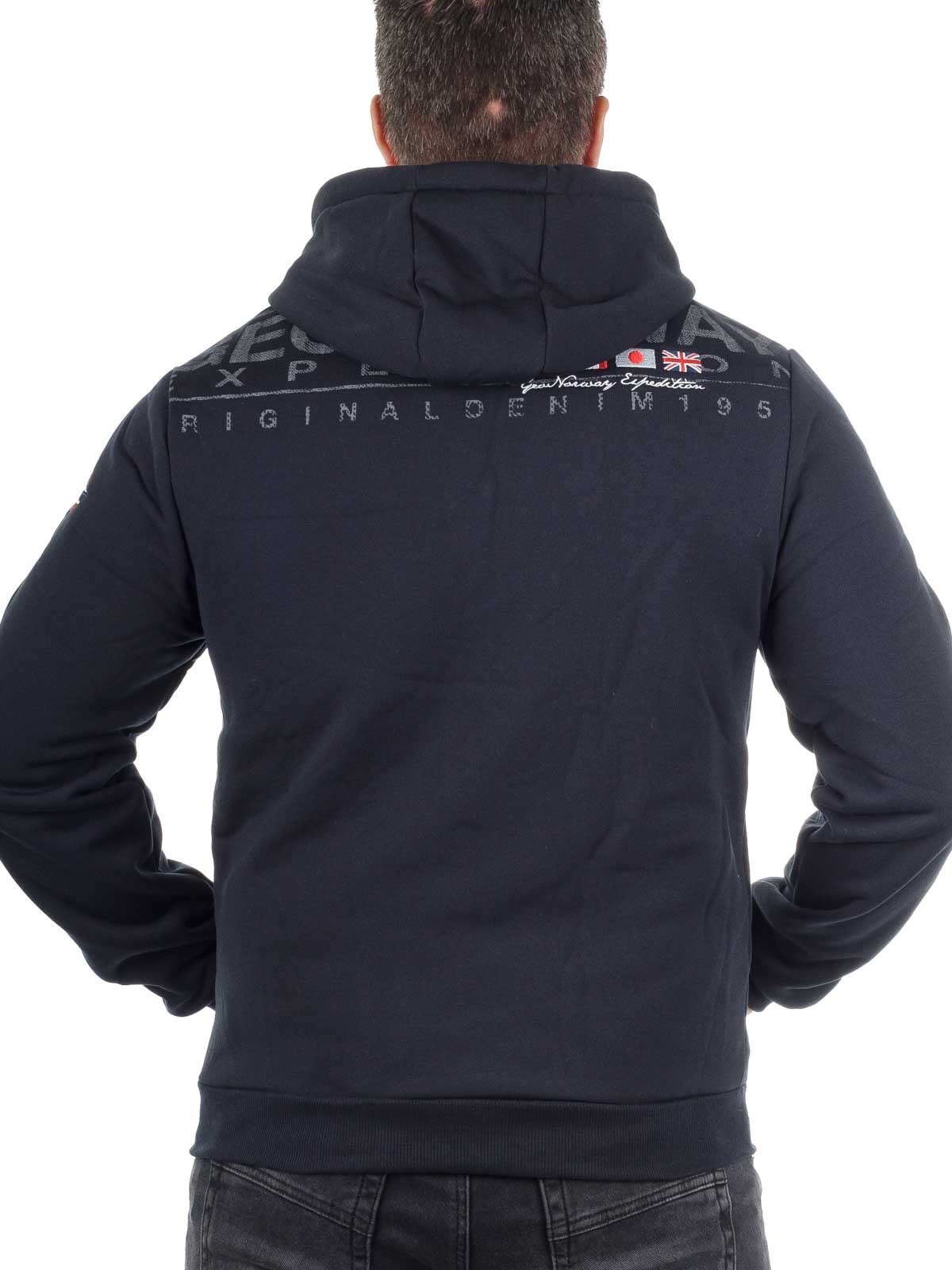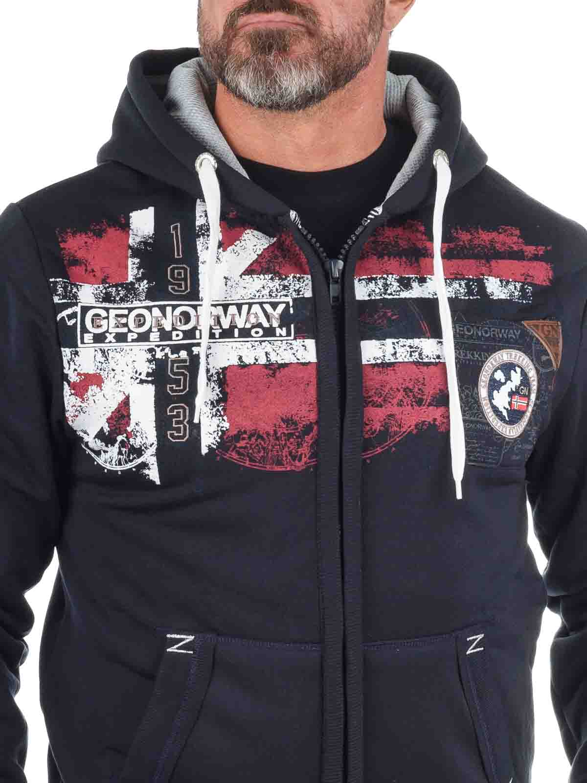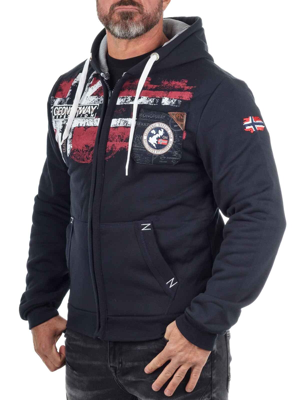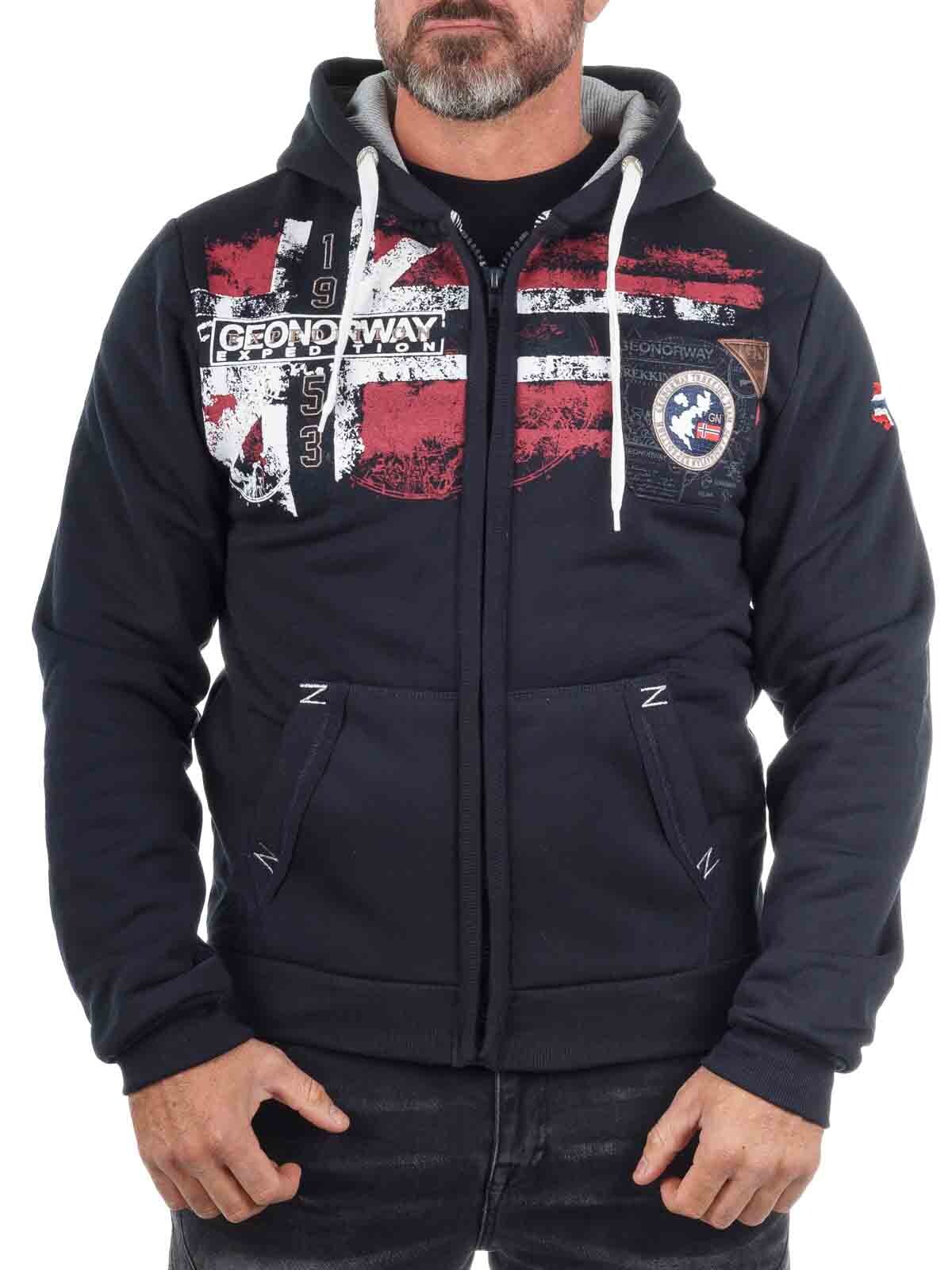 Huvtröja med dragkedja, tryck och broderade detaljer. Mjuk modell med tre öppna fickor fram och ribbad mudd i avsluten. Tillverkad i en stretchig bomullsmix.