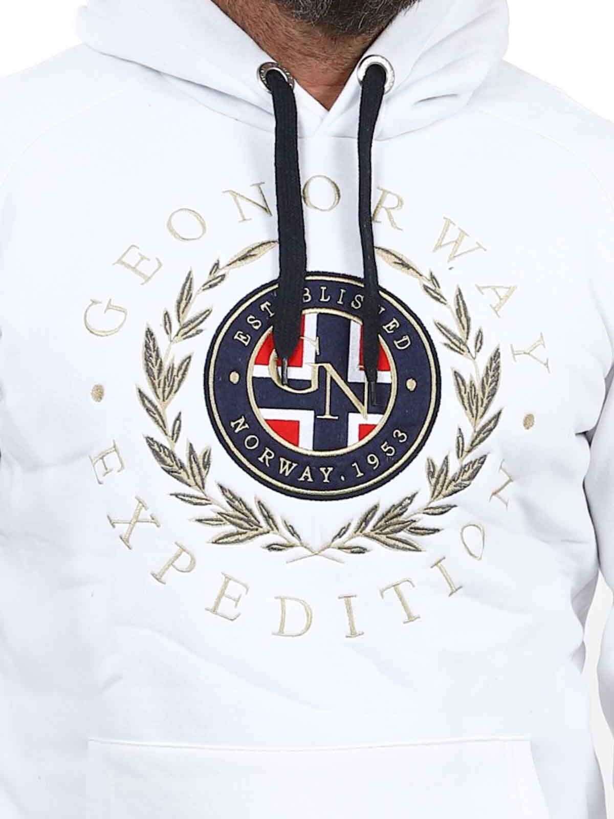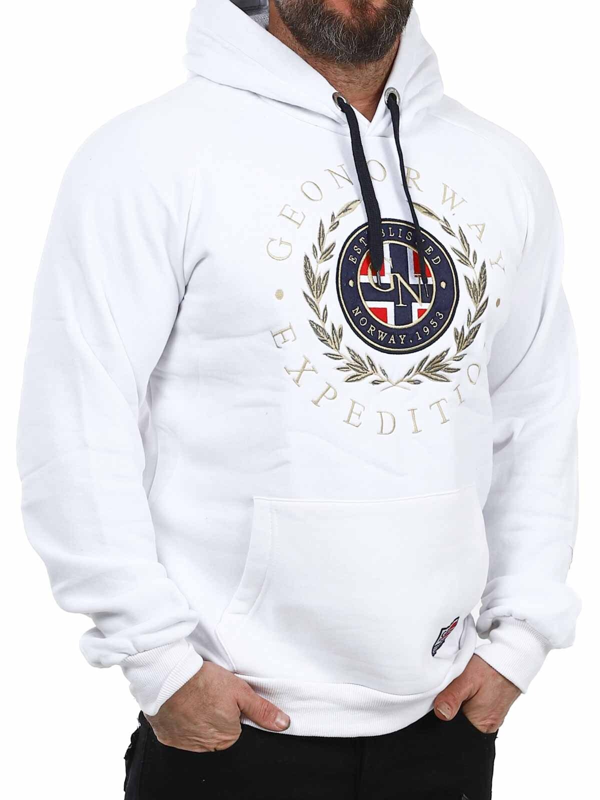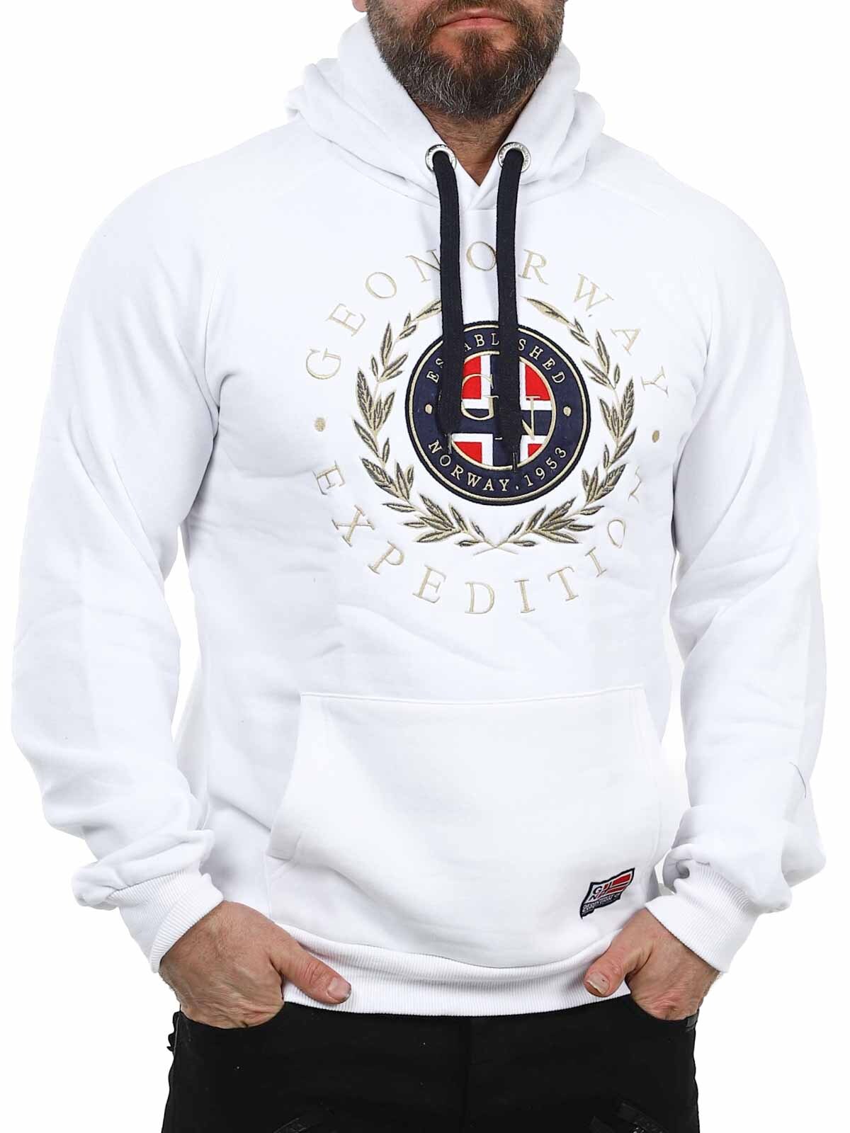 Huvtröja med logotyp. Den har en rymlig huva med justerbara dragsnören och en stor magficka framtill. Elastiska muddar vid ärmslut och midja ger en bekväm passform.