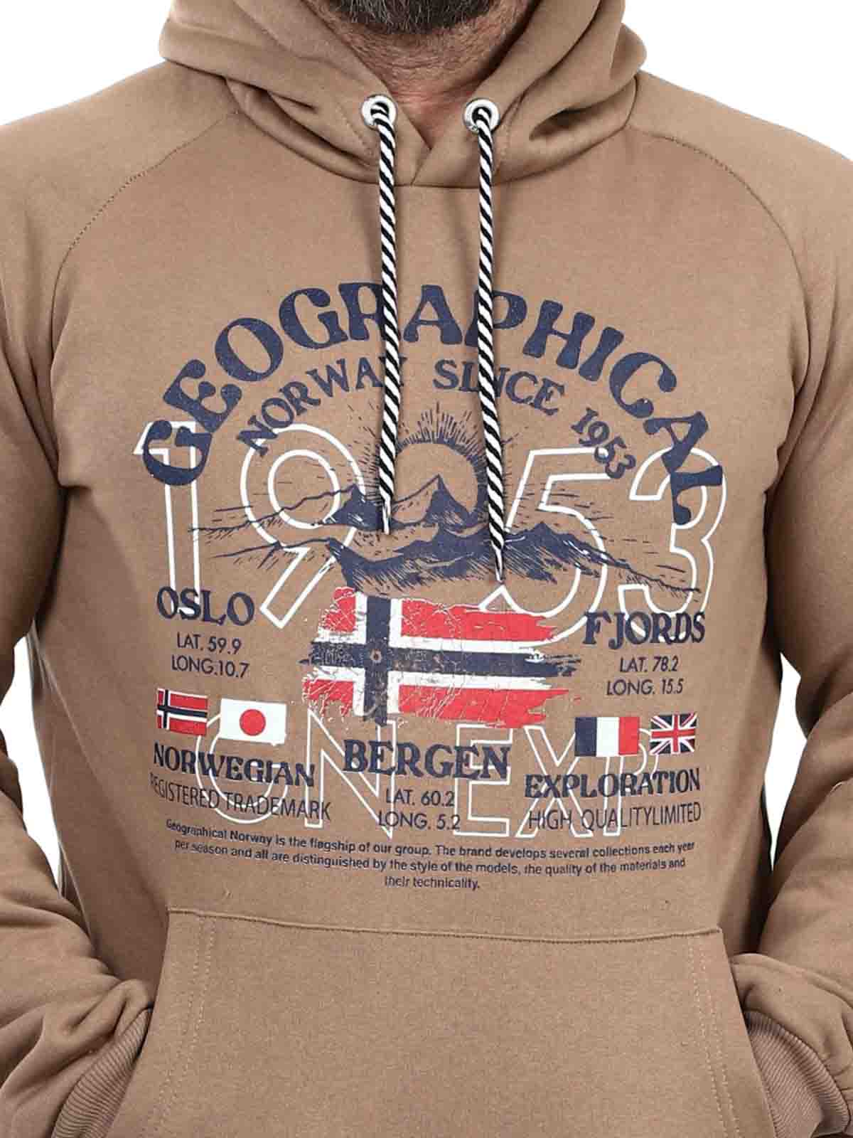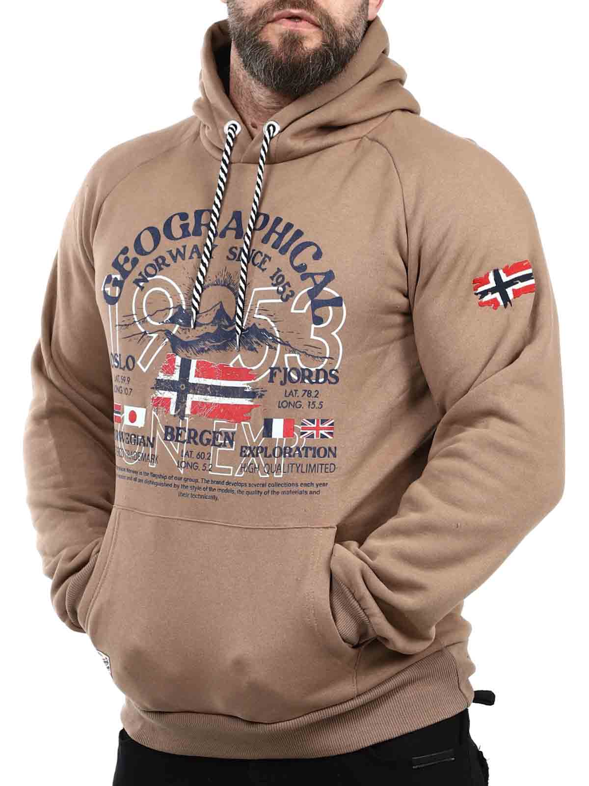 Huvtröja med logotyp. Den har en rymlig huva med justerbara dragsnören och en stor magficka framtill. Elastiska muddar vid ärmslut och midja ger en bekväm passform.