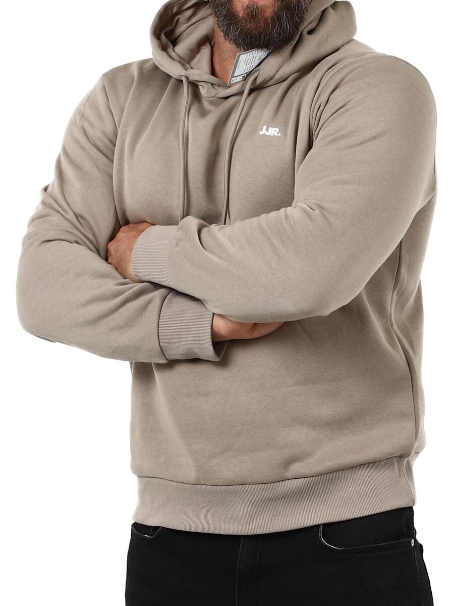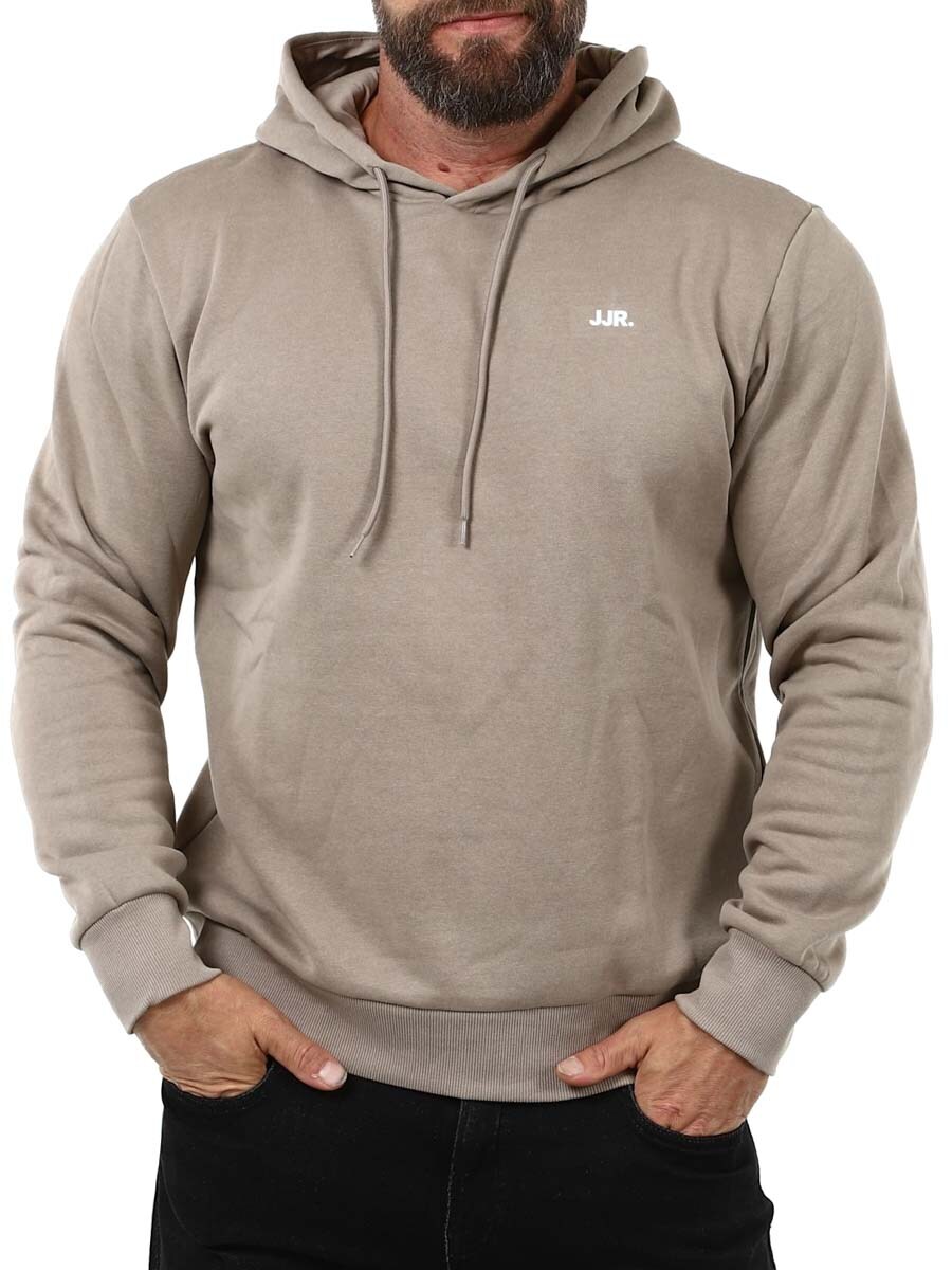 Stilren och bekväm tröja med en praktisk huva som kan justeras med dragsnöre. Tillverkad i mjukt material med borstad finish på insidan för optimal komfort och värme. Diskret JJR-logga på bröstet som tillför en modern touch. Ingen garderob är komplett utan några pålitliga basplagg!