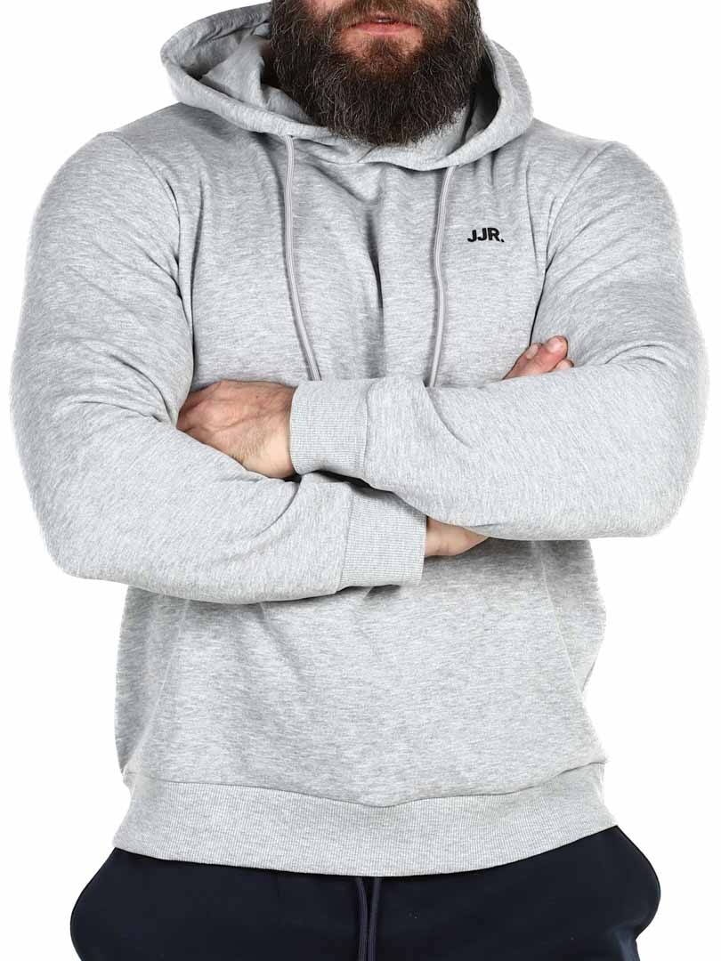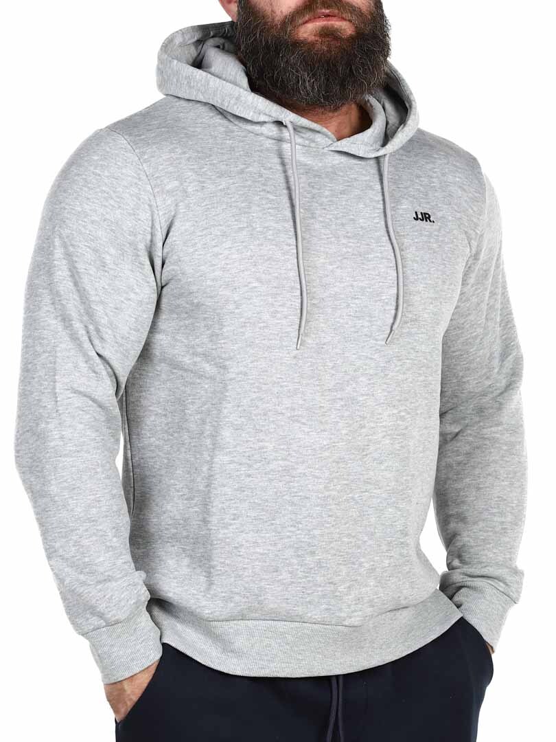 Stilren och bekväm tröja med en praktisk huva som kan justeras med dragsnöre. Tillverkad i mjukt material med borstad finish på insidan för optimal komfort och värme. Diskret JJR-logga på bröstet som tillför en modern touch. Ingen garderob är komplett utan några pålitliga basplagg!