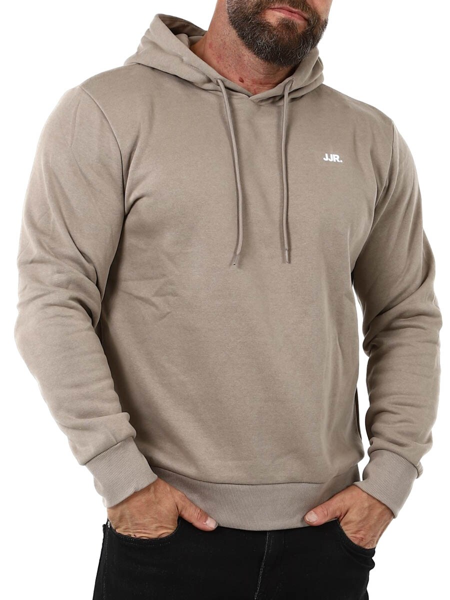 Stilren och bekväm tröja med en praktisk huva som kan justeras med dragsnöre. Tillverkad i mjukt material med borstad finish på insidan för optimal komfort och värme. Diskret JJR-logga på bröstet som tillför en modern touch. Ingen garderob är komplett utan några pålitliga basplagg!