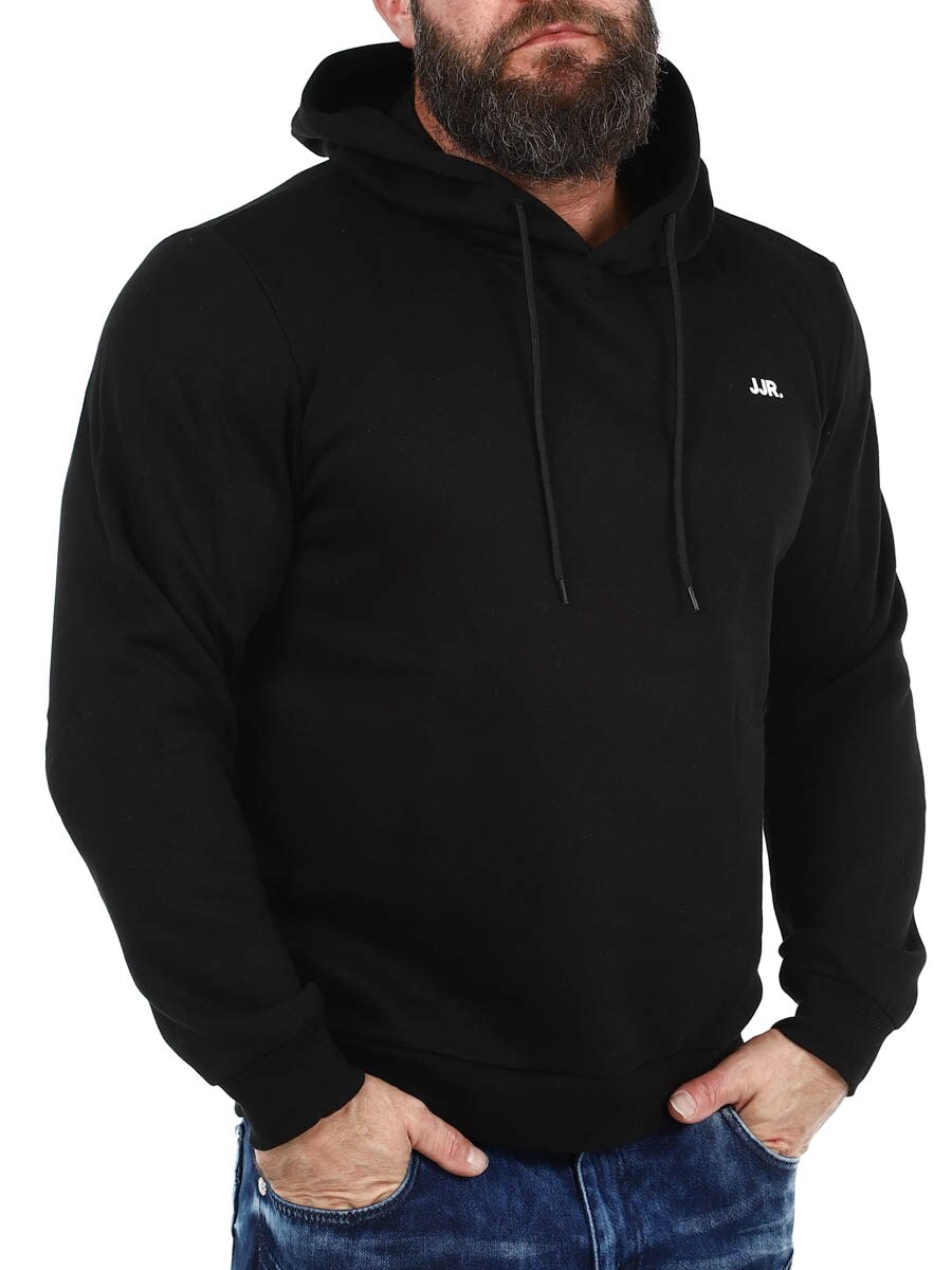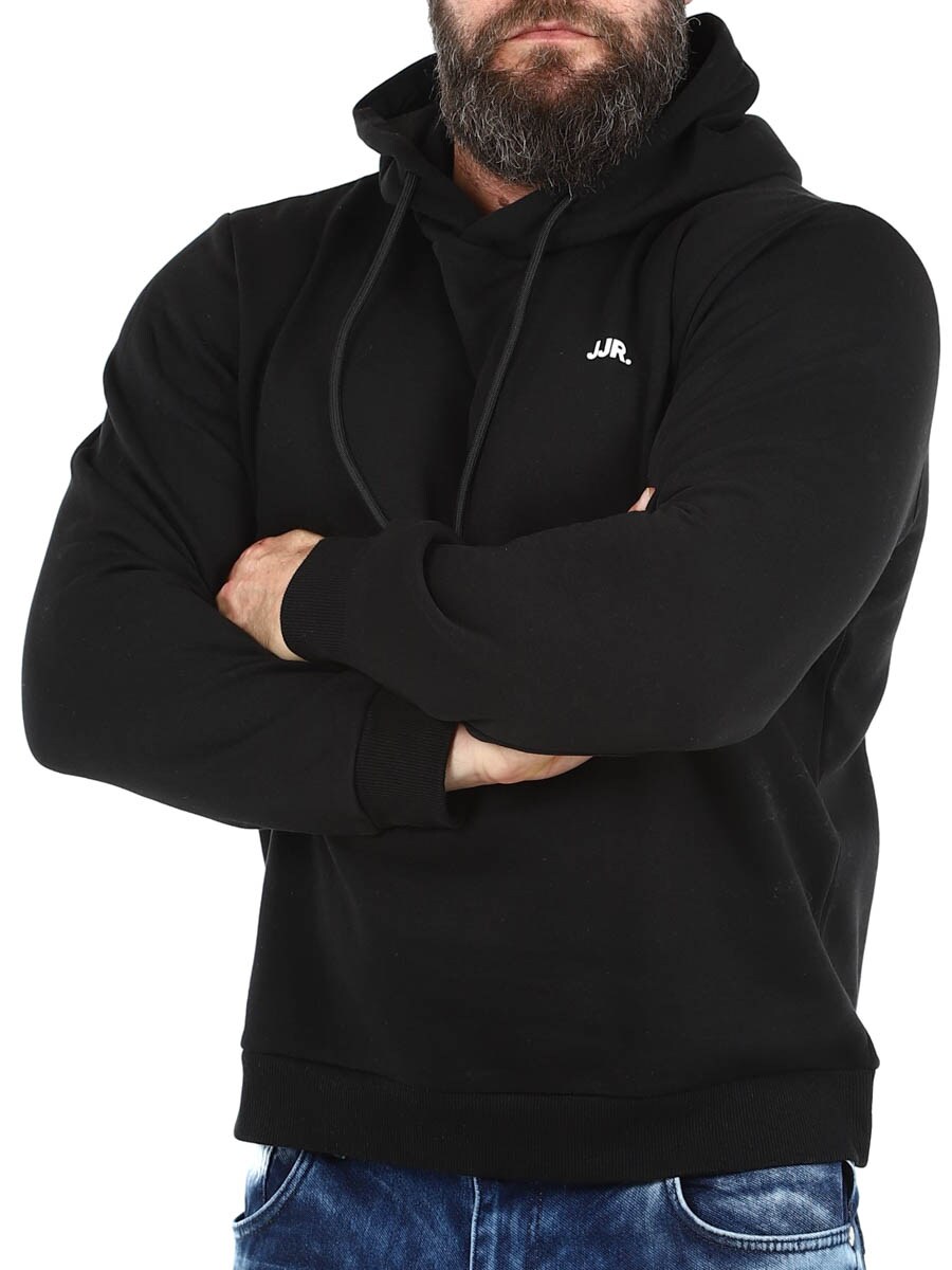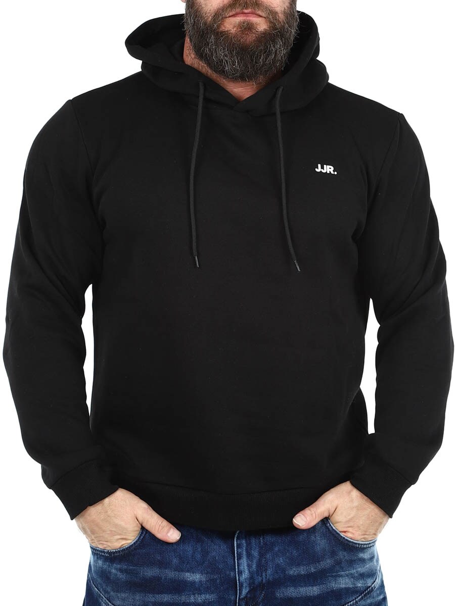 Stilren och bekväm tröja med en praktisk huva som kan justeras med dragsnöre. Tillverkad i mjukt material med borstad finish på insidan för optimal komfort och värme. Diskret JJR-logga på bröstet som tillför en modern touch. Ingen garderob är komplett utan några pålitliga basplagg!