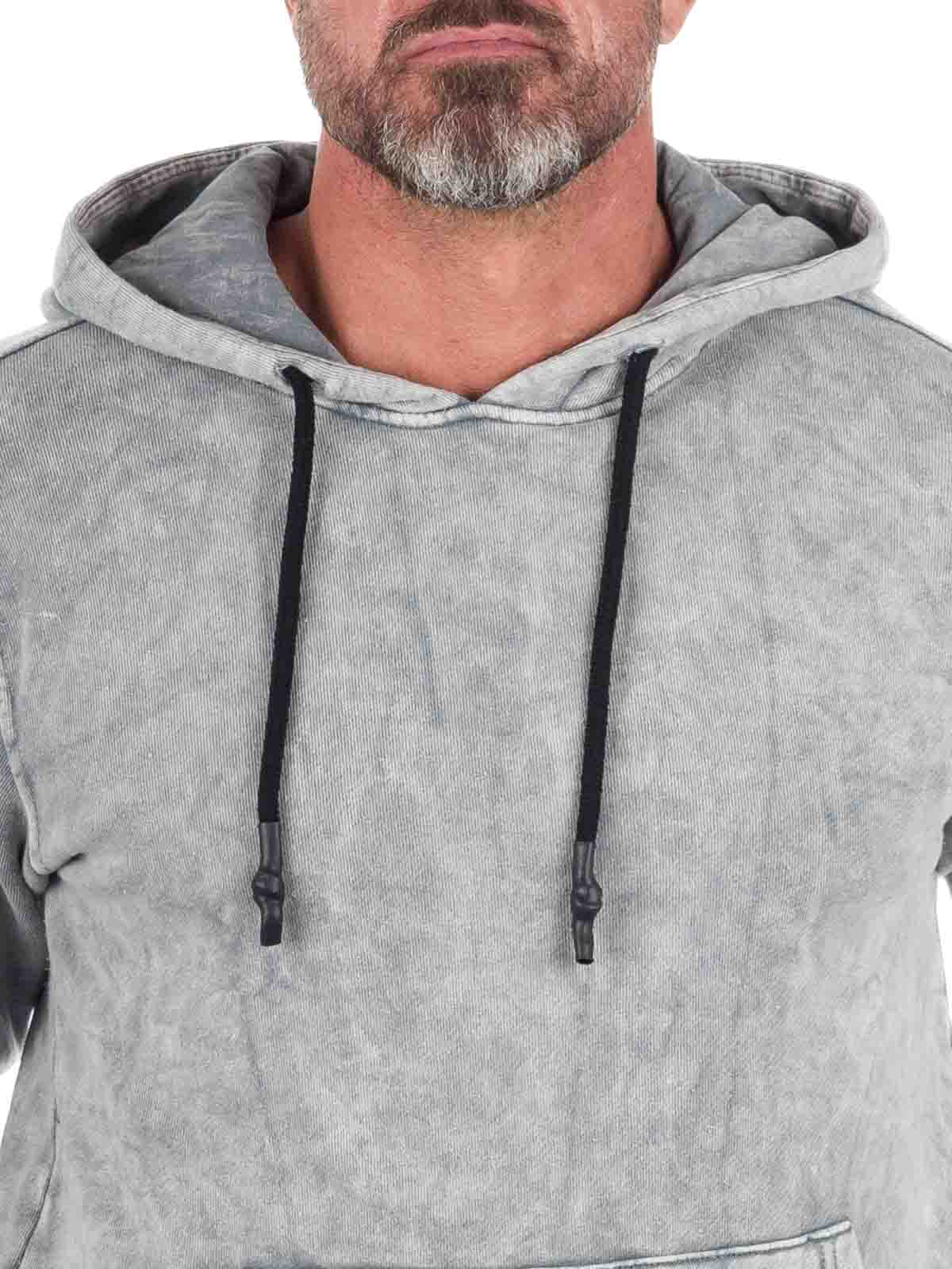 Huvtröja med tvättad look och textprint på ärmarna. Den har justerbar huva, känguruficka och ribbade muddar för en bekväm passform. Tillverkad i 100% bomull.