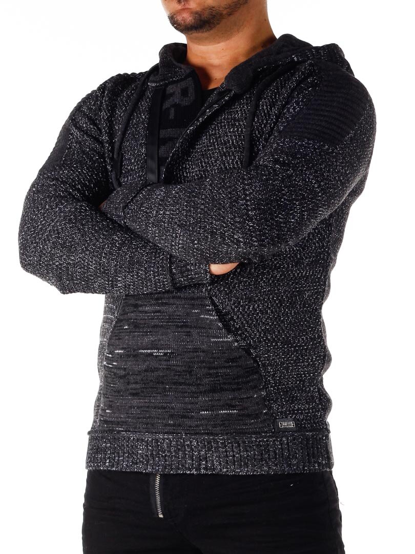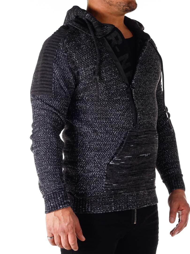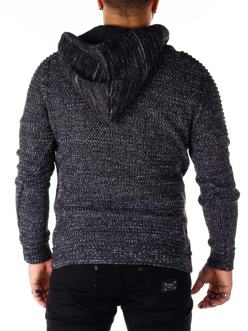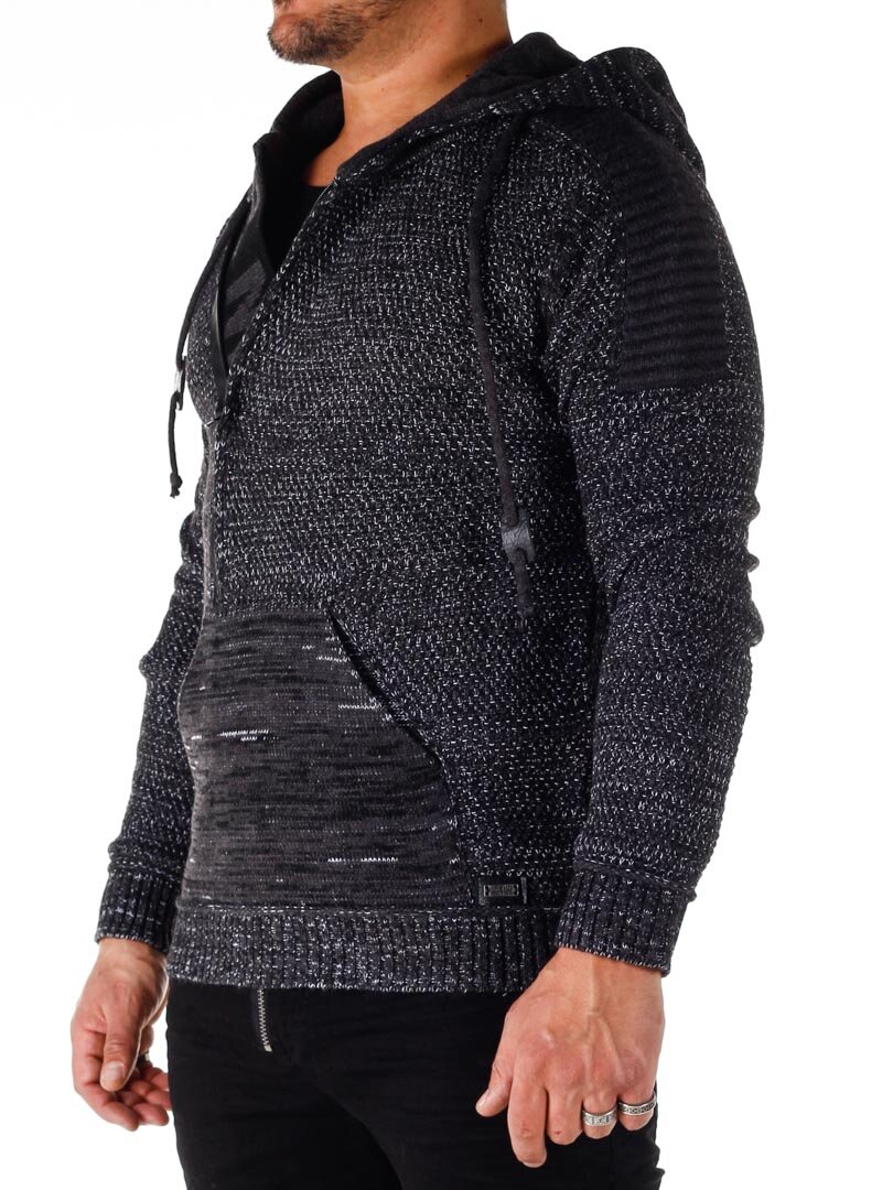 Huvtröja i stickad stretch med revärer på sidorna som ger ett maskulint uttryck. Unik blixtlås framtill som går ned över bröstet och dolda bokstäver i stickat som syns när blixtlåset är öppet. Tjock, behaglig huva med snörning och genomgående ficka fram till. Finns i fler färger!