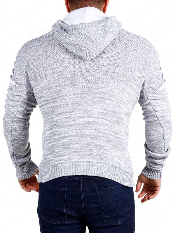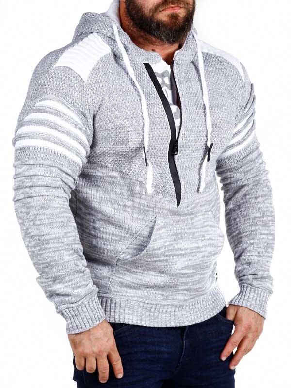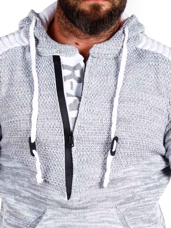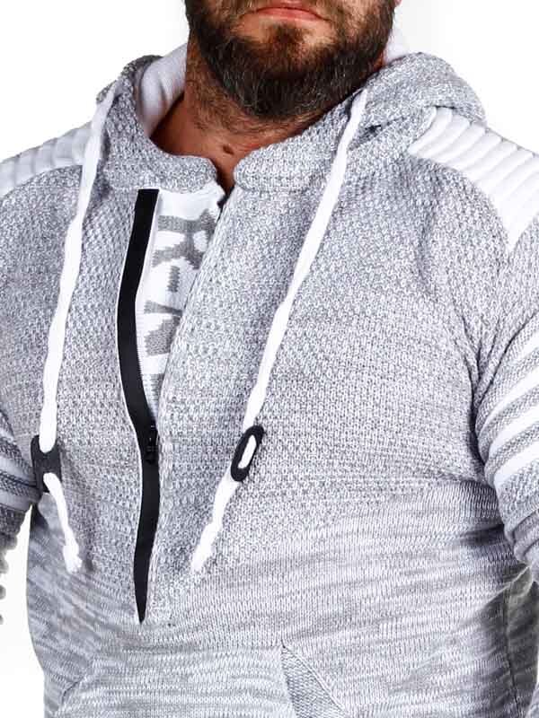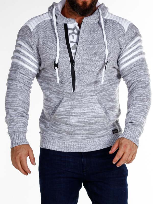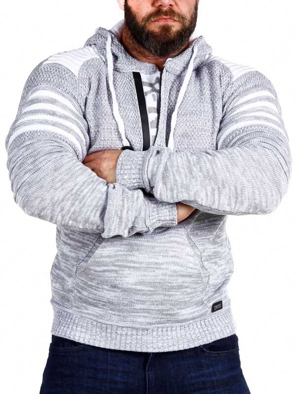 Hoodie i stickat material med mycket stretch. Halsen kan öppnas upp med dragkeja och där syns också loggan i stickat print. Designad med flera olika mönsterstickningar där axlar och ärmar hamnar i fokus. Stor ficka på magen.