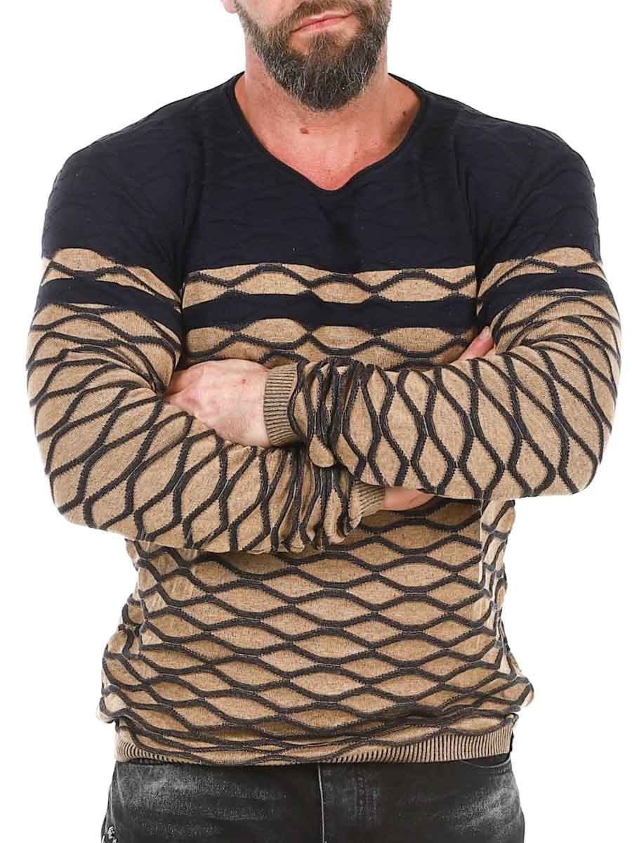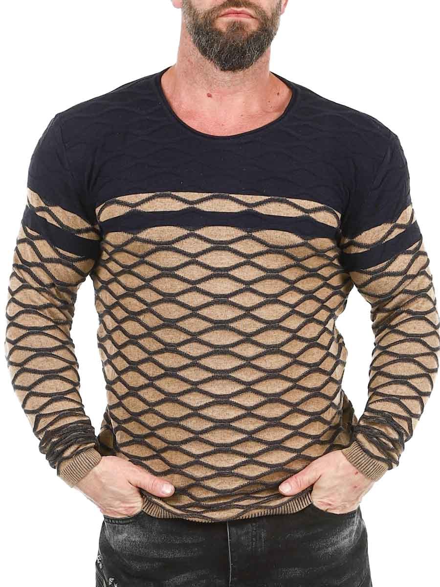 Stickad tröja med dekorativt mönster i svart. Den har rundad halsöppning samt ribbad nederkant och ärmslut. Tillverkad i ett stretchigt mjukt material. Ett utmärkt val för dig som vill ha en snygg och bekväm tröja med det lilla extra.