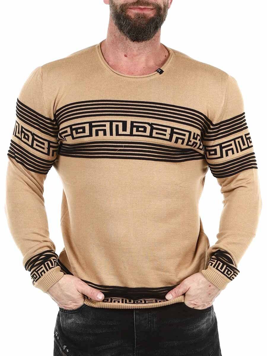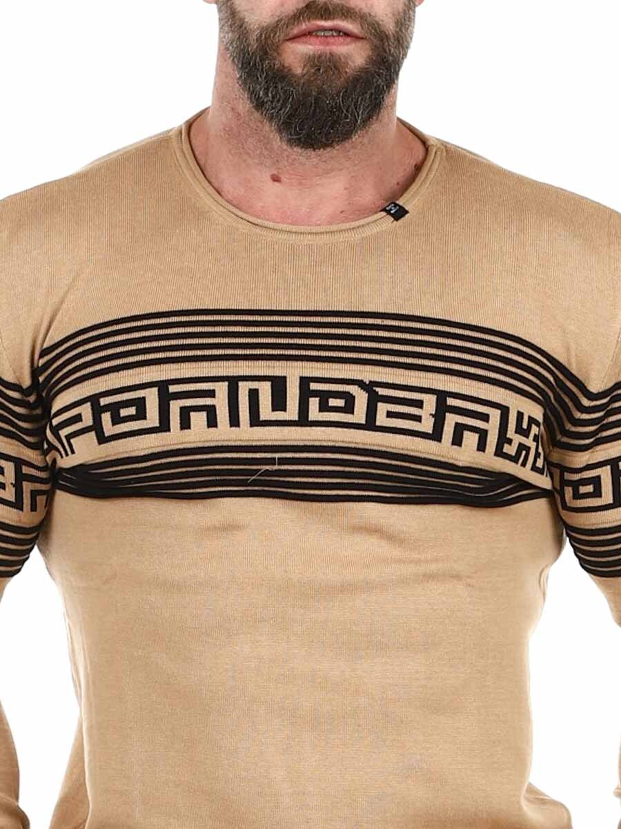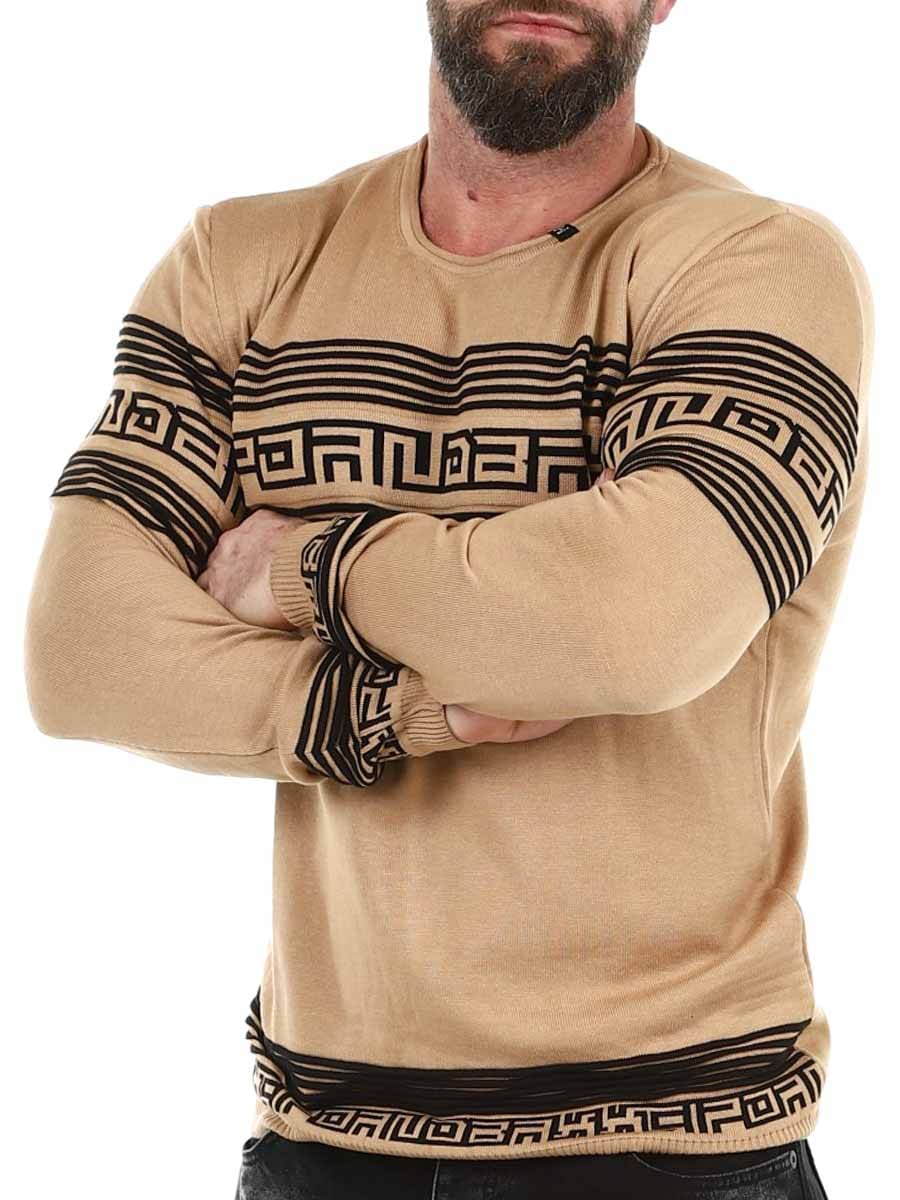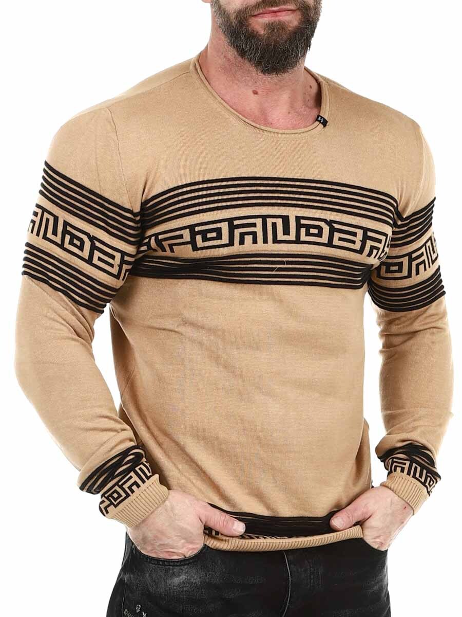 Stickad tröja med dekorativt mönster i svart. Den har rundad halsöppning samt ribbad nederkant och ärmslut. Tillverkad i ett stretchigt mjukt material. Ett utmärkt val för dig som vill ha en snygg och bekväm tröja med det lilla extra.