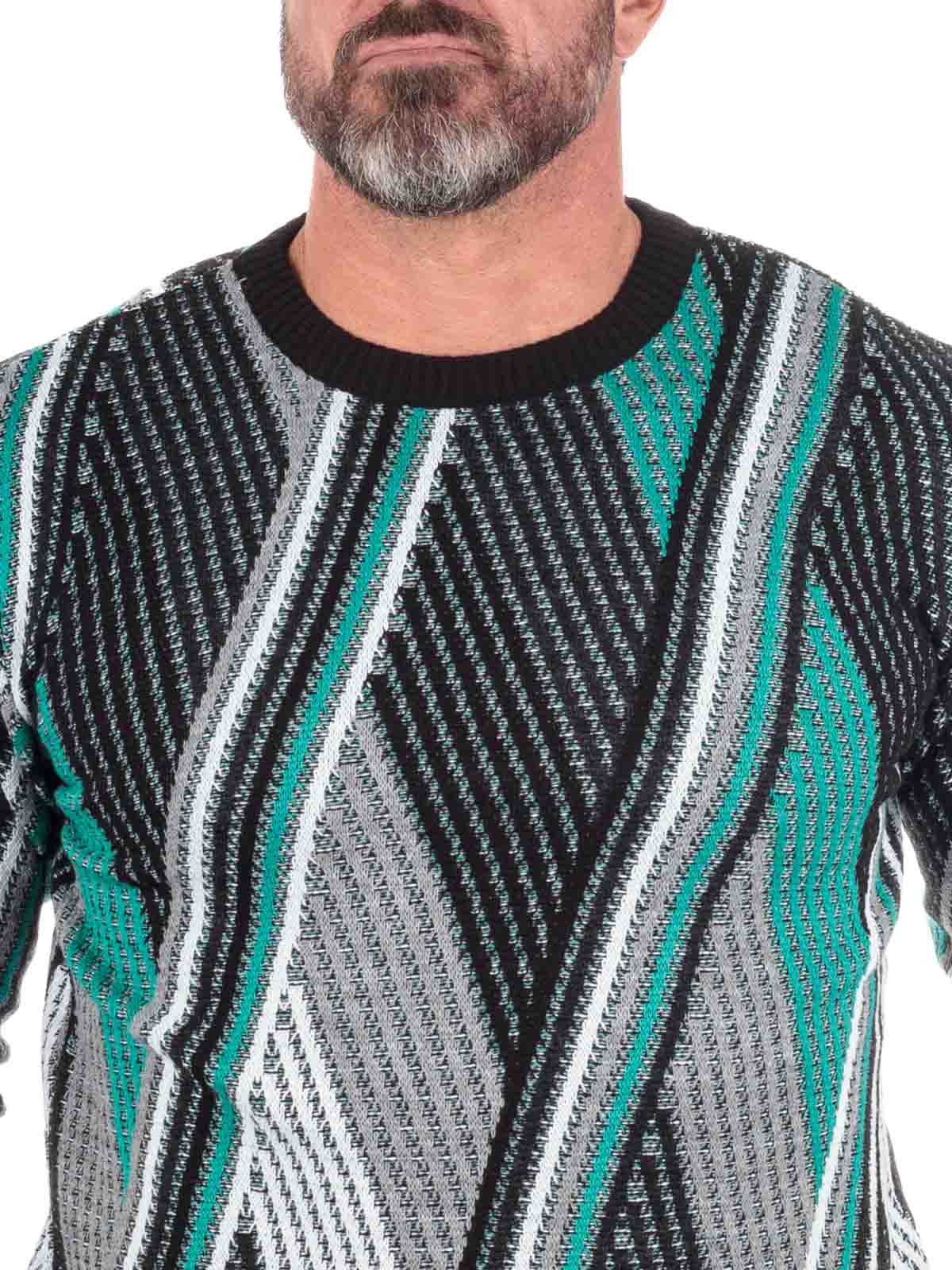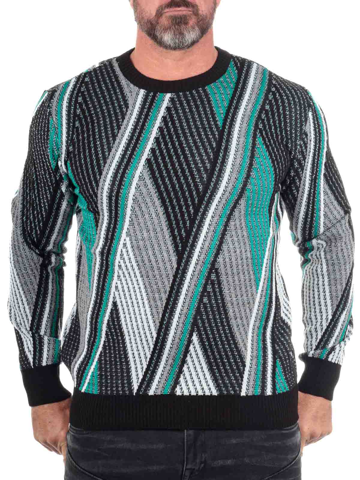 Flerfärgad tröja i stickat material. Den unika färgkombinationen och strukturen i stickningen ger ett unikt och livfullt uttryck. Tröjan har rund hals och ribbstickade avslut som ger en bekväm och följsam passform.