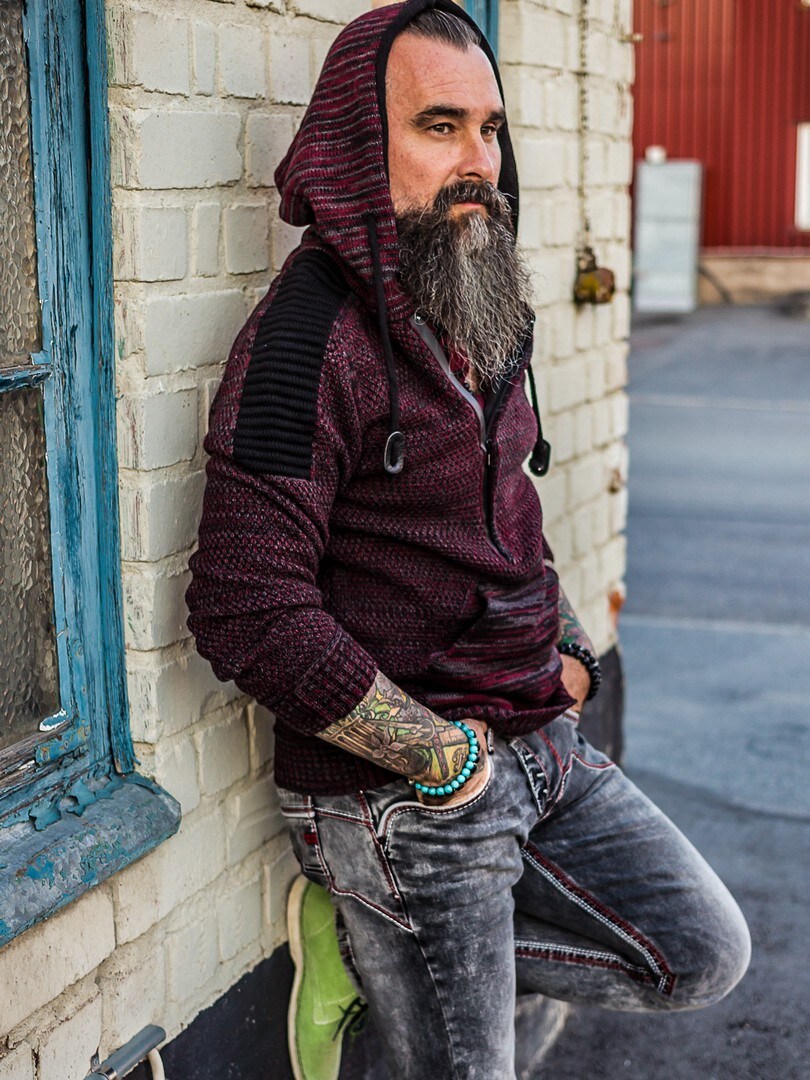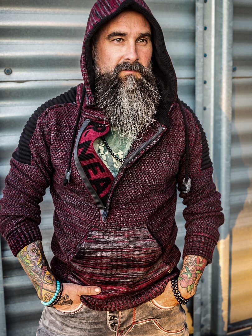 Hoodie i stickat material från Rusty Neal