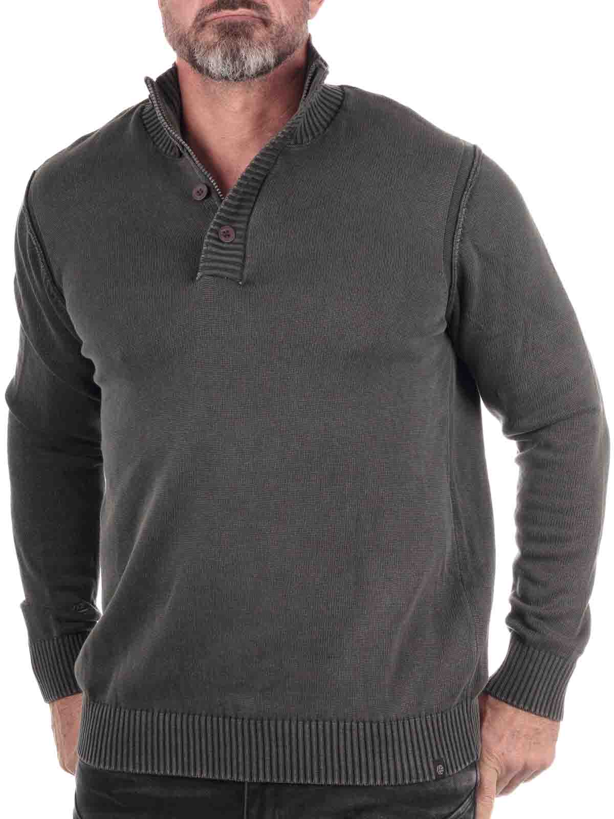 Niels Half Placket Tröja från Indicode i mörkgrått är den ultimata stickade tröjan som kombinerar komforten från 100% bomull med en snygg, avslappnad krage.