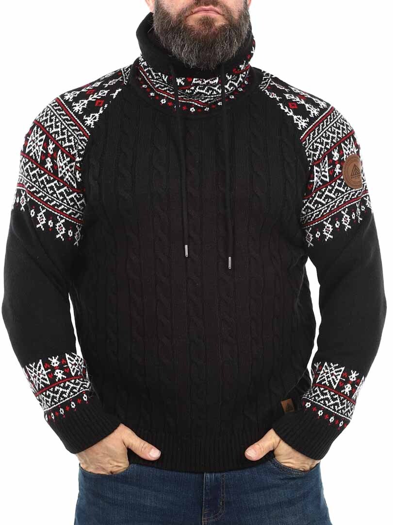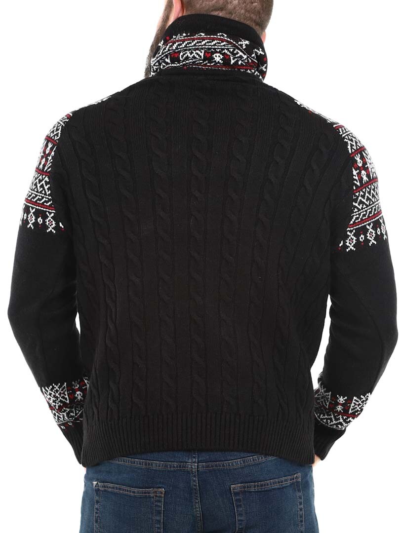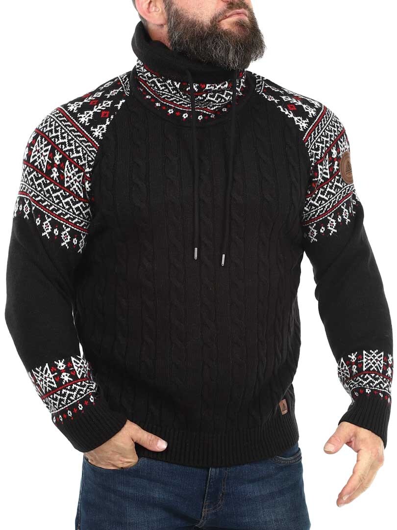 Kabelstickad tröja. Designad med hög hals som kan regleras med snören. Ärmar och hals framhävs med snyggt mönster i kontrastfärger. Denna tröja är specialtillverkad för våra kunder och finns endast hos RockDenim!