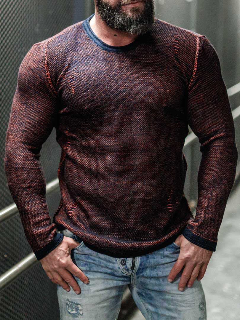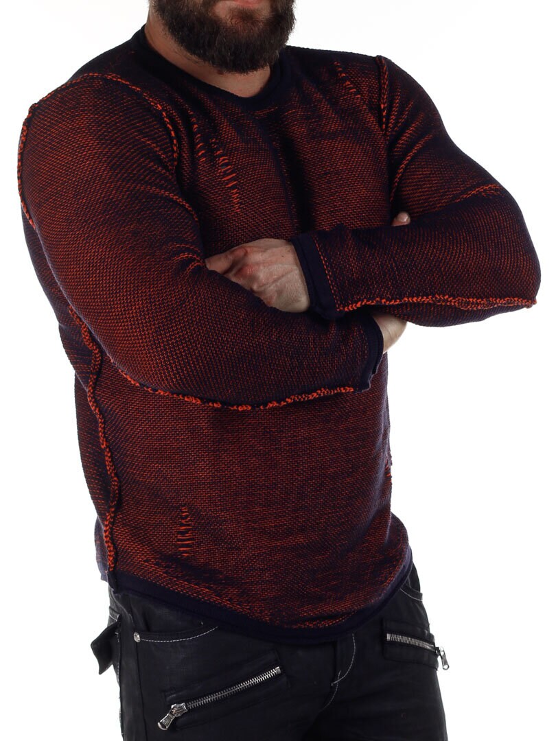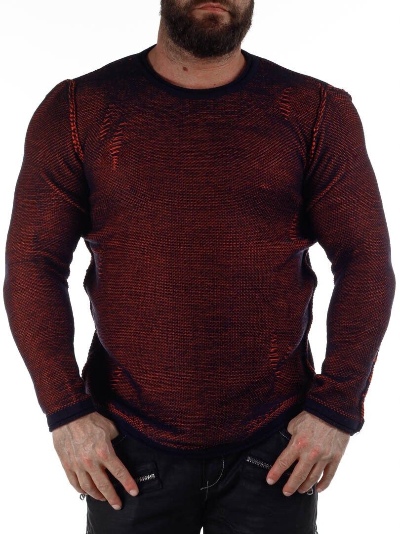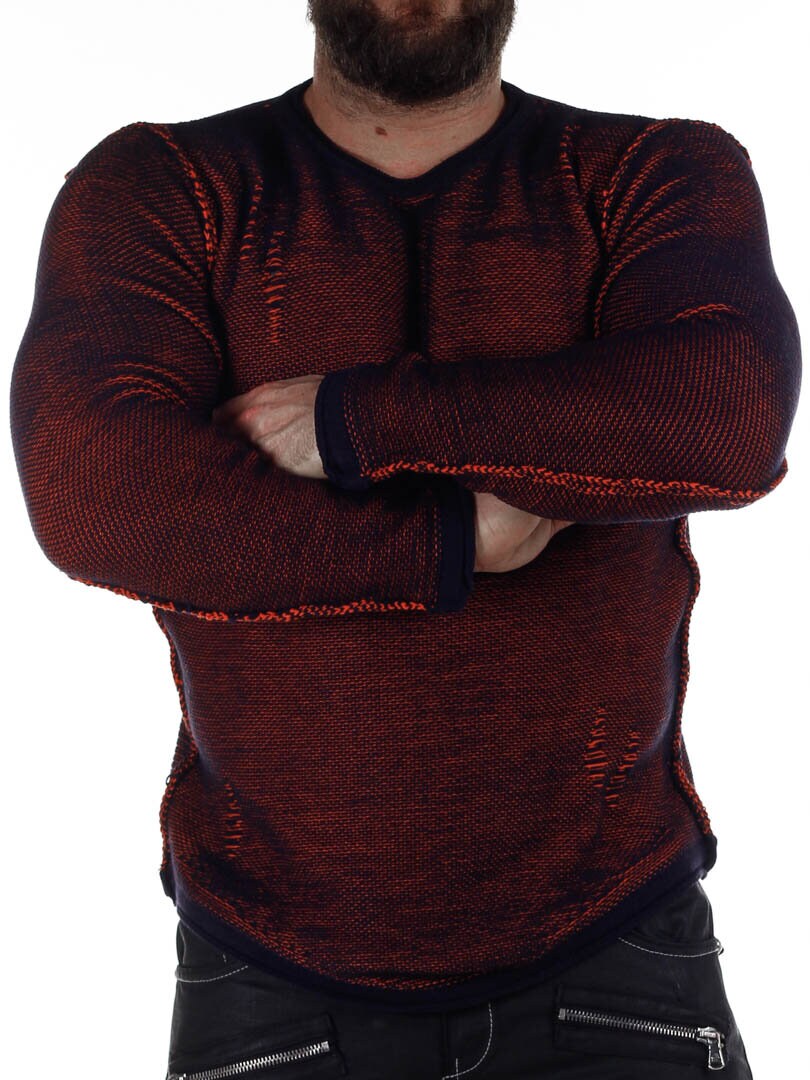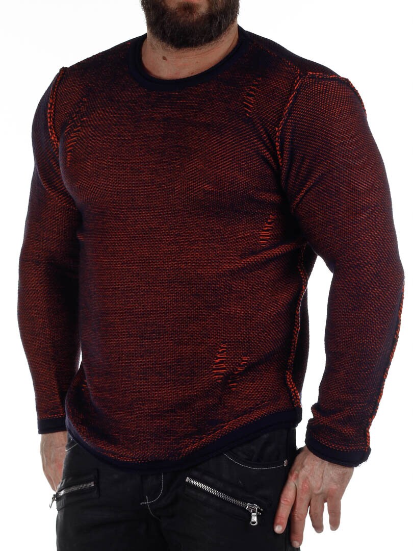 En maskulin tröja som kombinerar stilren design med rå attityd. Den stickade strukturen tillsammans med slitna detaljer vid axlar, sidor och ärmar ger plagget ett tufft och modernt uttryck. Modellen har rund halsringning och en bekväm passform som gör den lätt att bära både till jeans och mer uppklädda byxor. Perfekt för dig som vill ha en tröja med stark karaktär och detaljer som sticker ut!