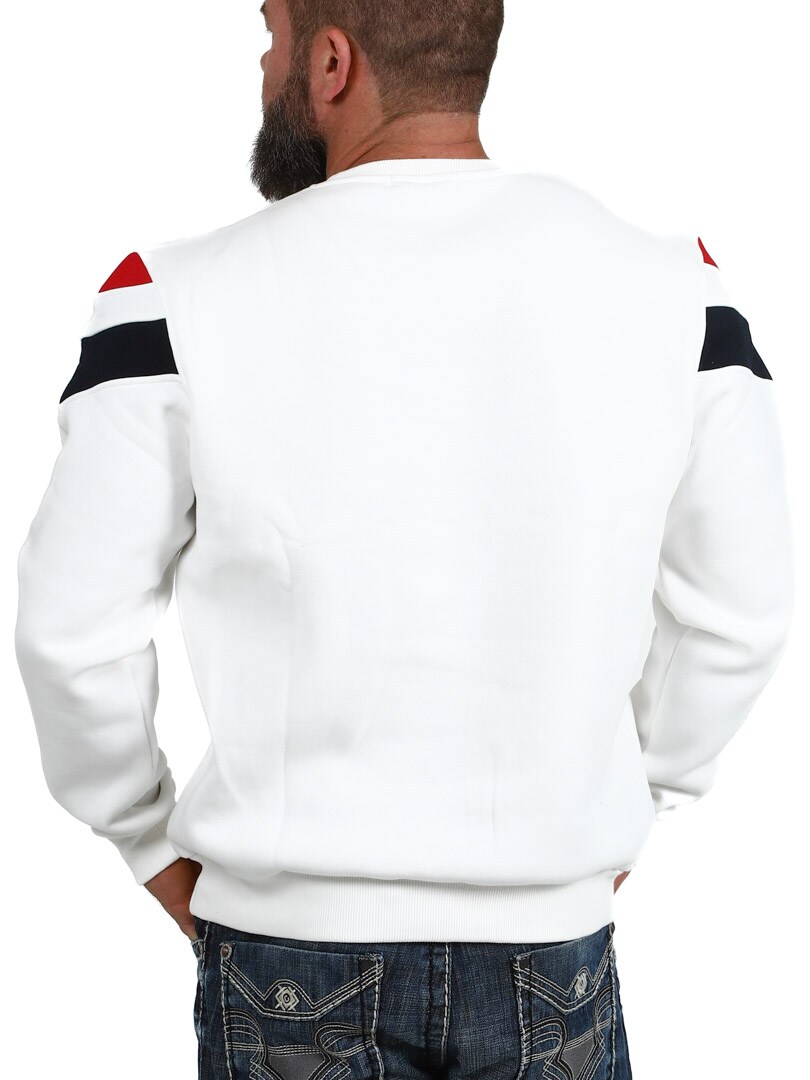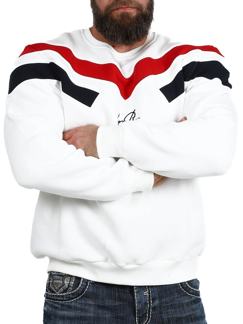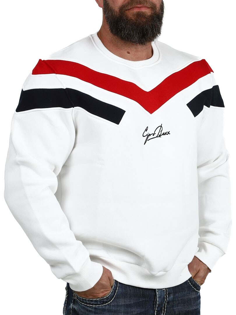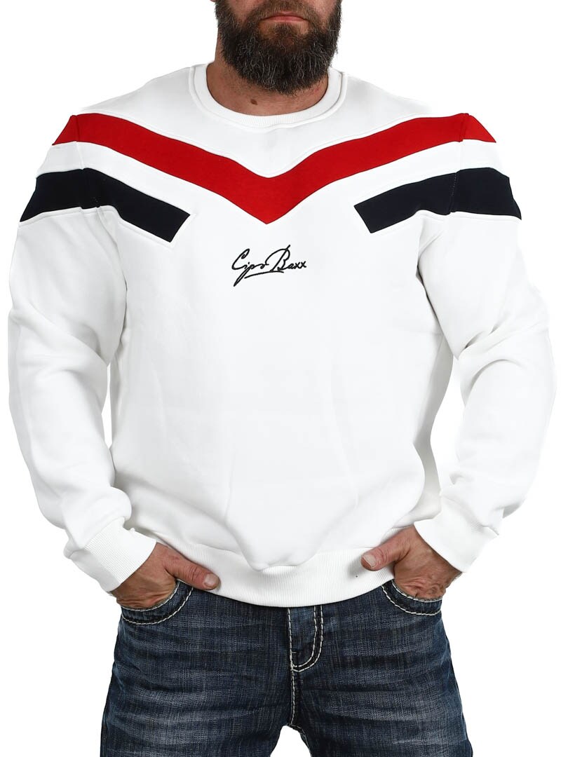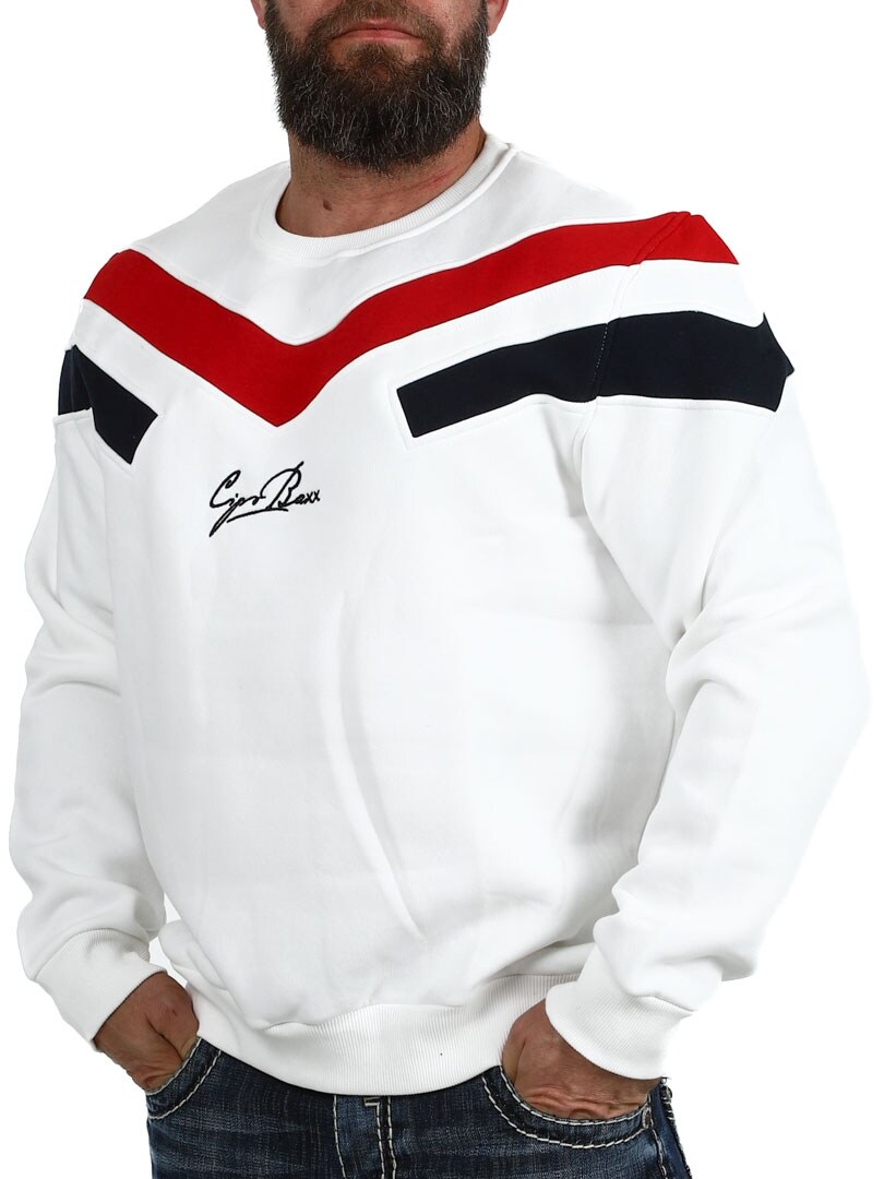 Tröja designad med skräddad logga på bröstet och ränder i kontrastfärg. Den har rundad halsöppning, ribbad mudd i avsluten och borstad insida.