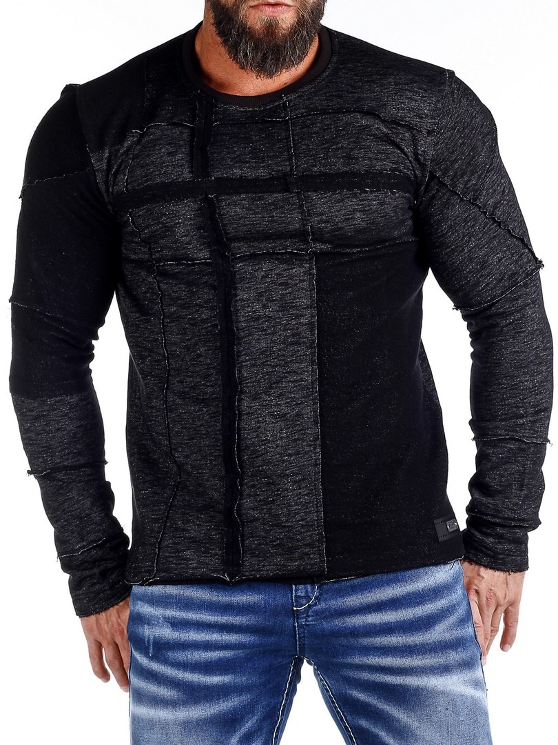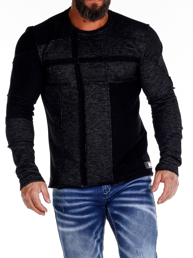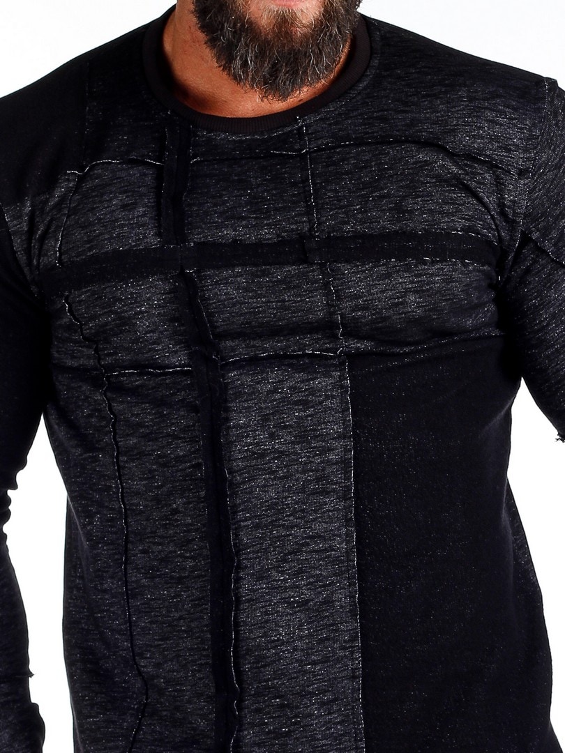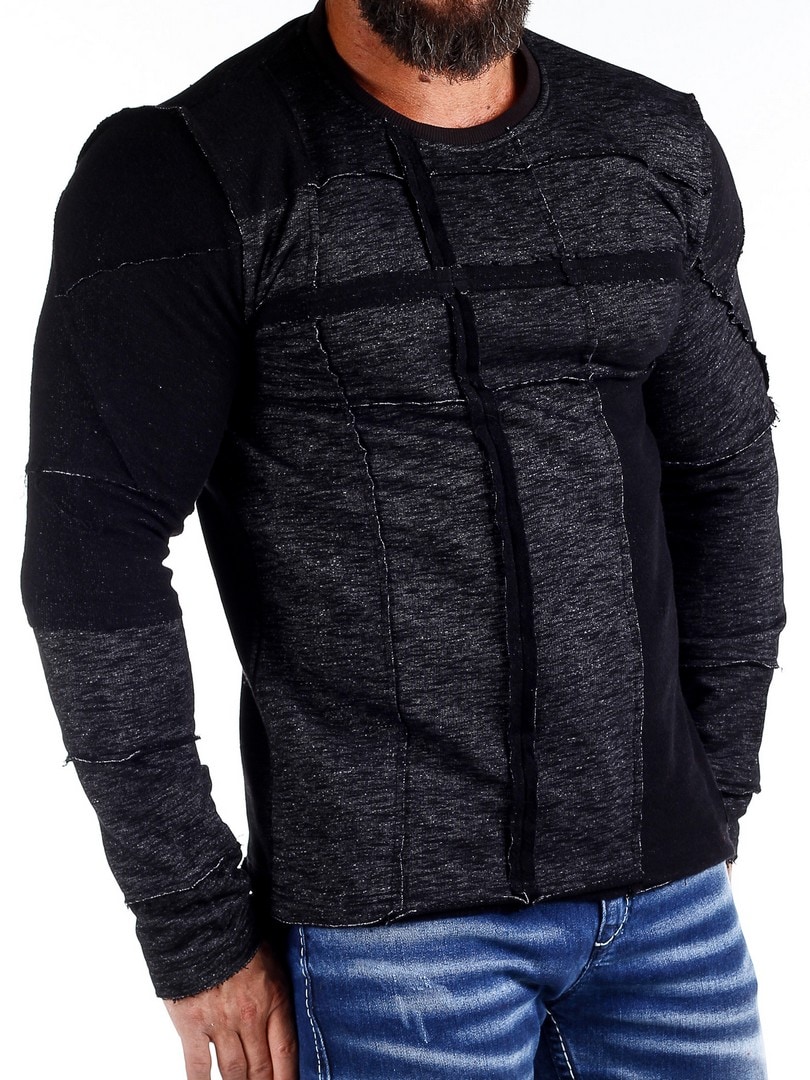 Långärmad tröja i melerad design med dekorativa sömdetaljer som ger ett tufft uttryck. Modellen har en kroppsnära passform med rundad halsöppning. Ett plagg för dig som vill kombinera komfort med attityd.