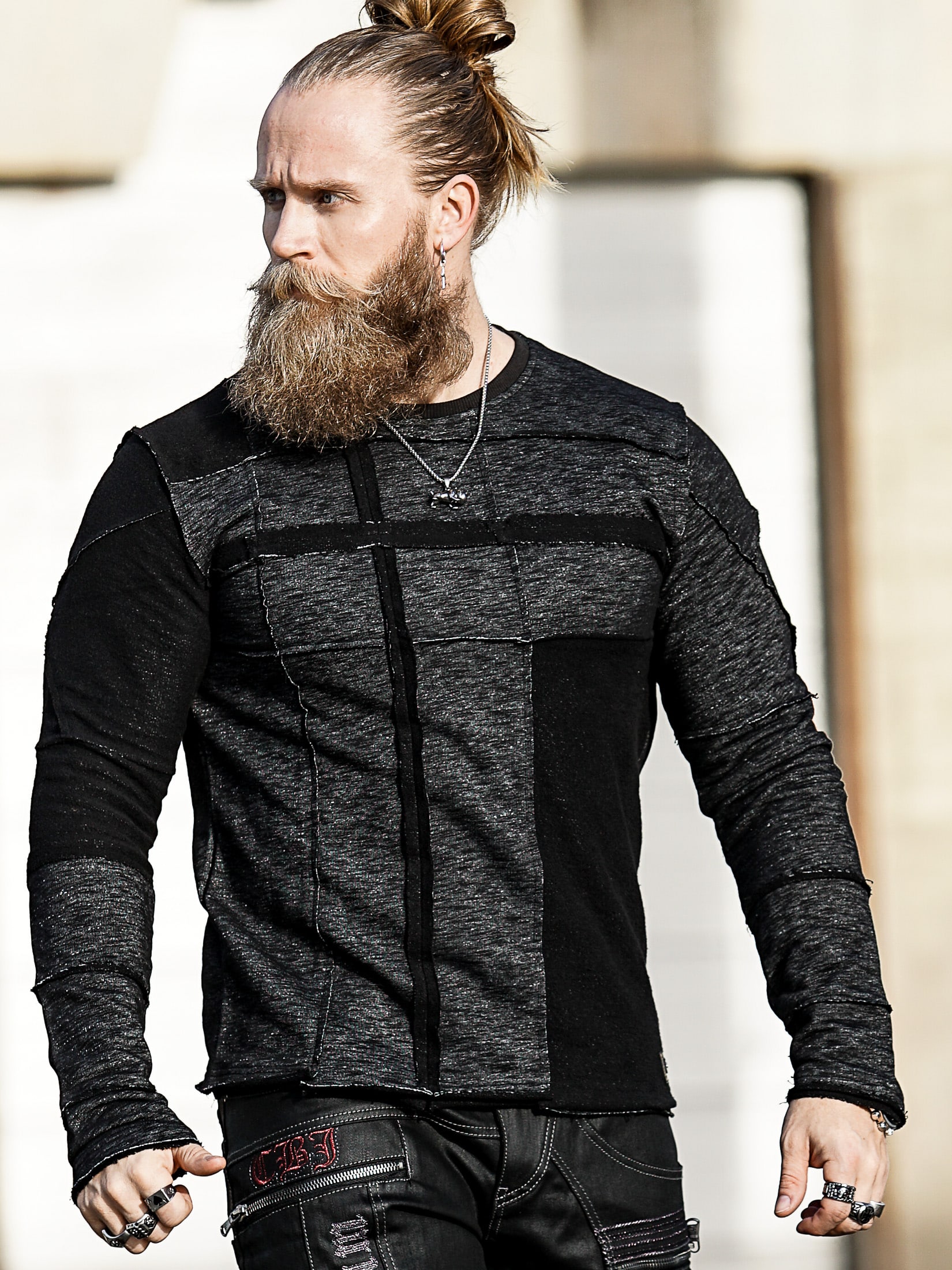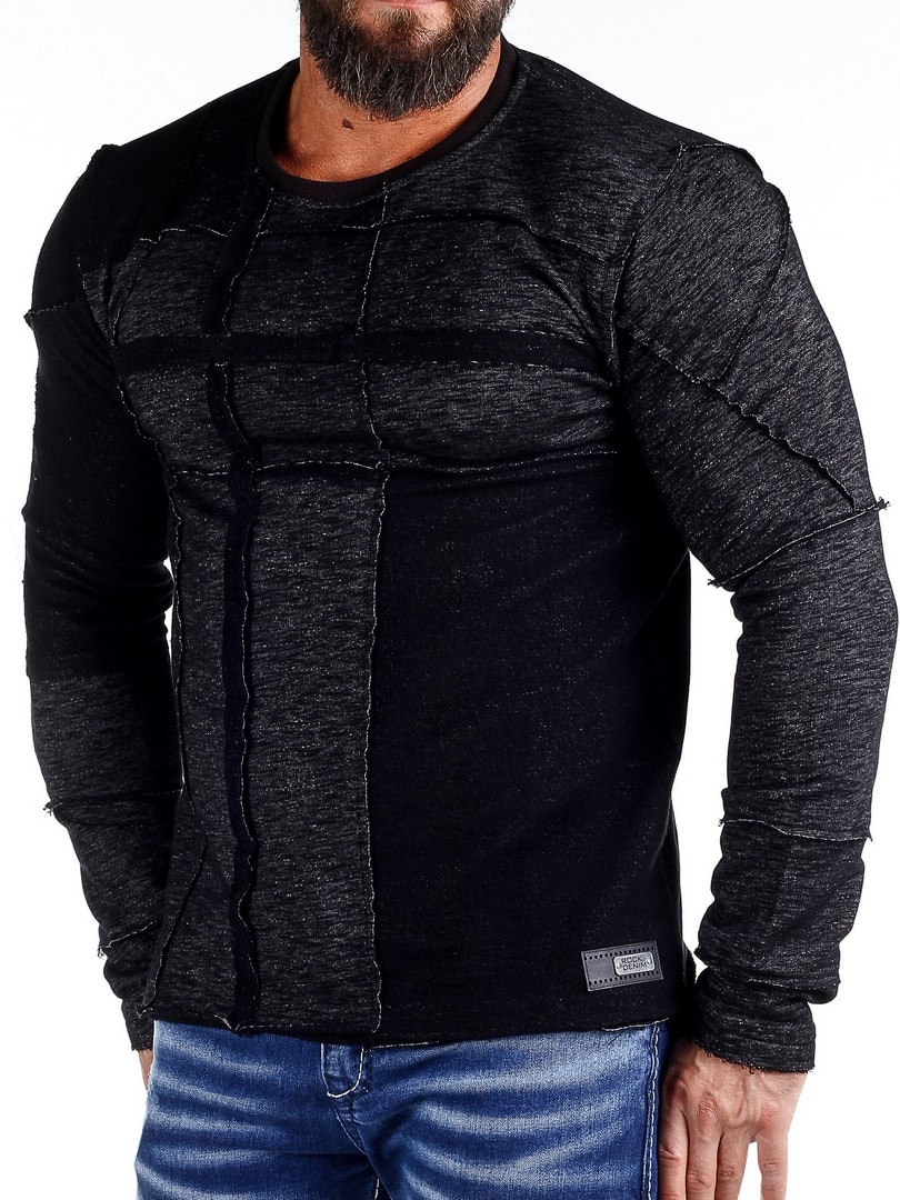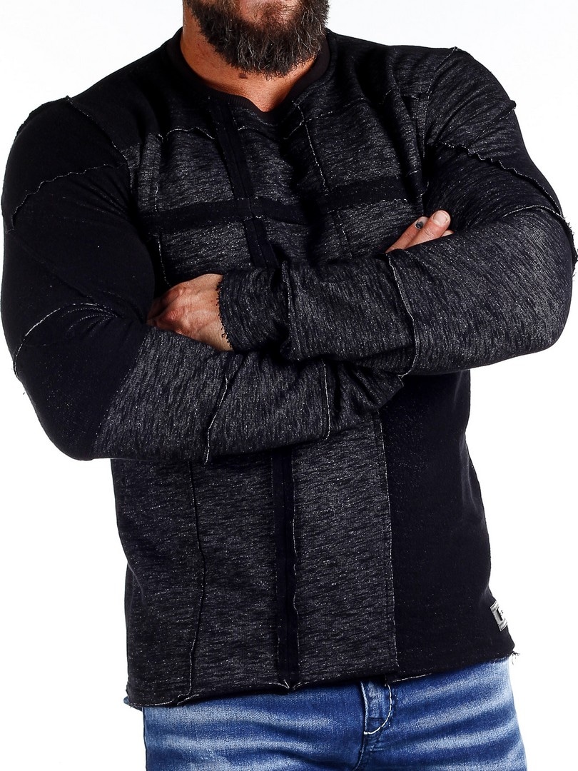Långärmad tröja i melerad design med dekorativa sömdetaljer som ger ett tufft uttryck. Modellen har en kroppsnära passform med rundad halsöppning. Ett plagg för dig som vill kombinera komfort med attityd.
