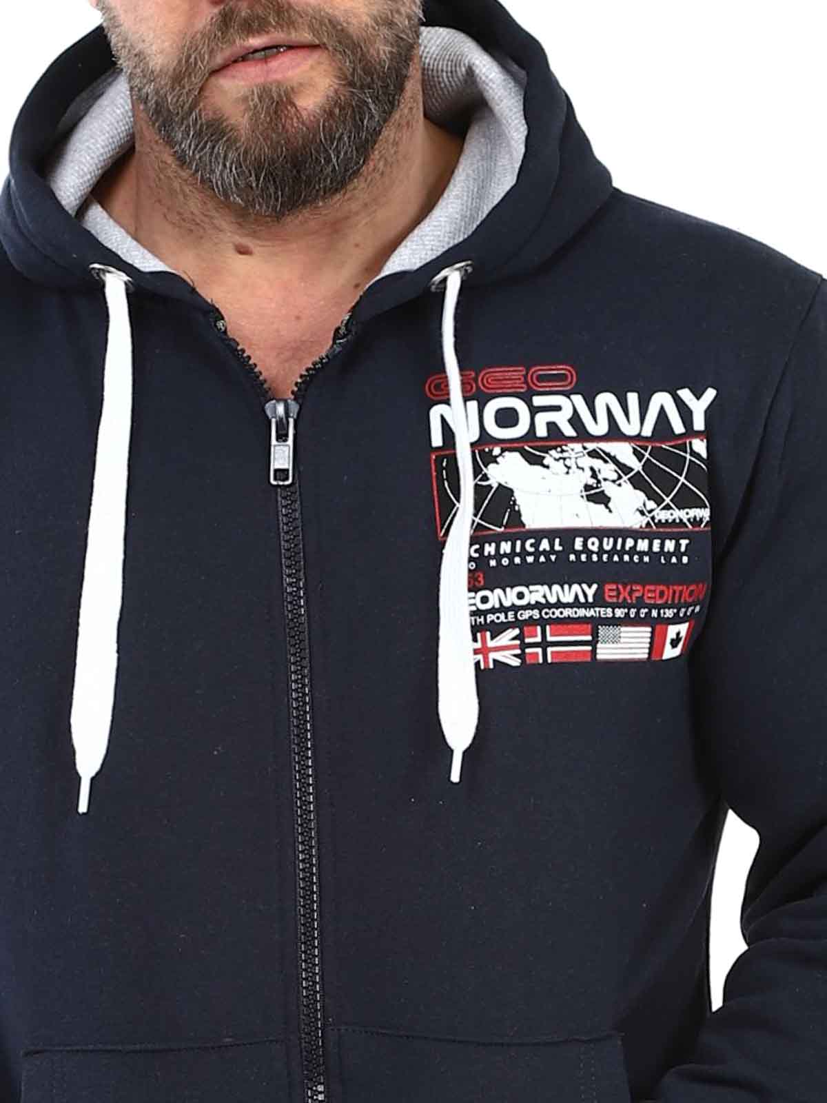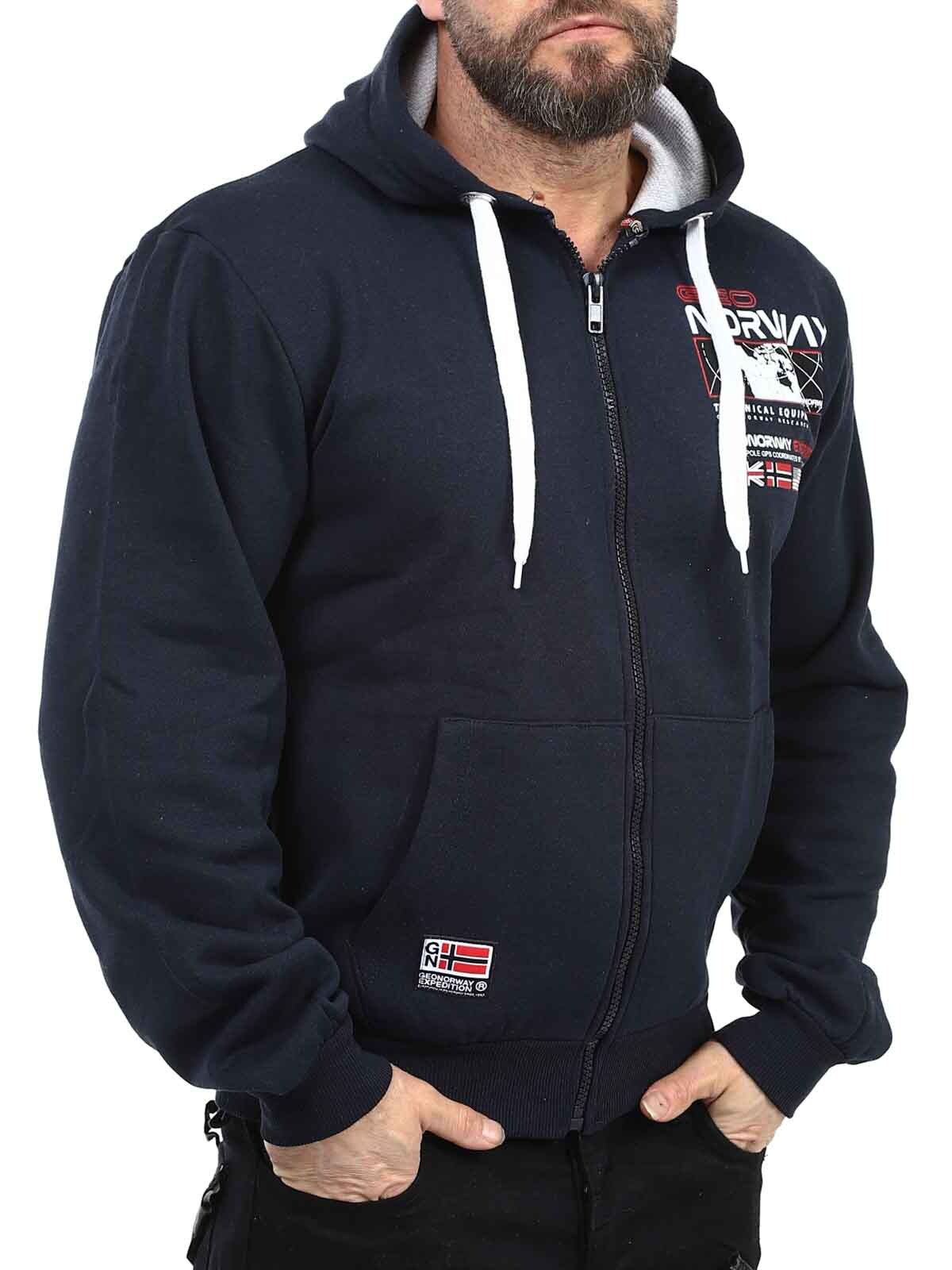 Huvtröja med logotyp och dragkedja. Den har en rymlig huva med justerbara dragsnören och en stor magficka framtill. Elastiska muddar vid ärmslut och midja ger en bekväm passform.