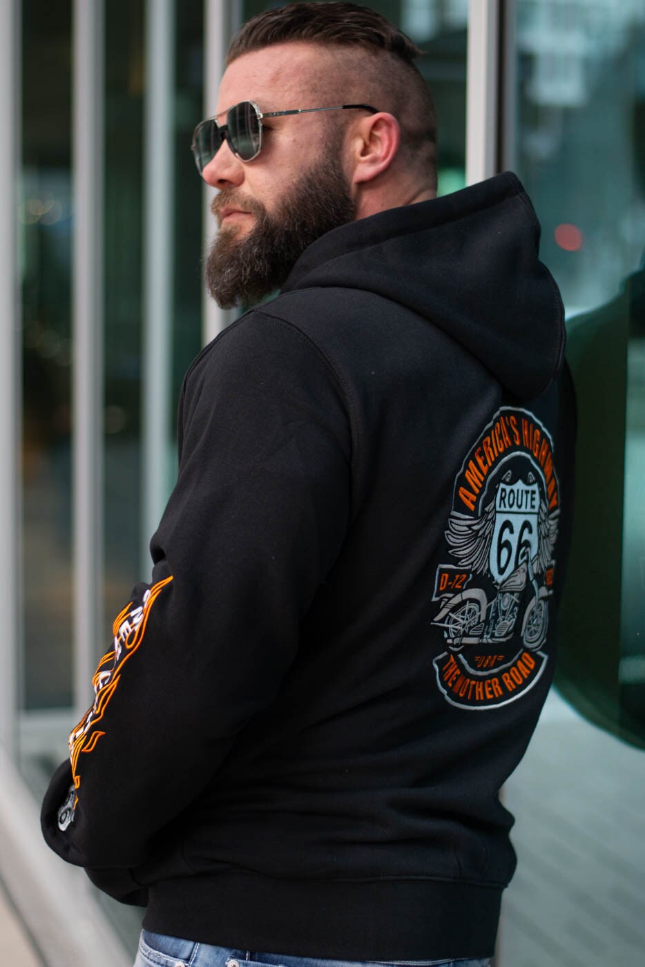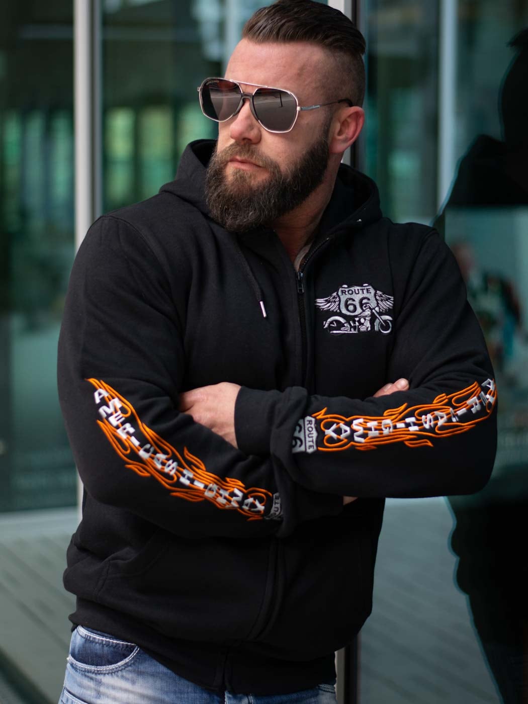 Huvtröja med dragkedja och fickor på magen. Rymlig och bekväm modell med skräddad design i vitt och orange. Bred mudd nertill och vid ärmsluten.