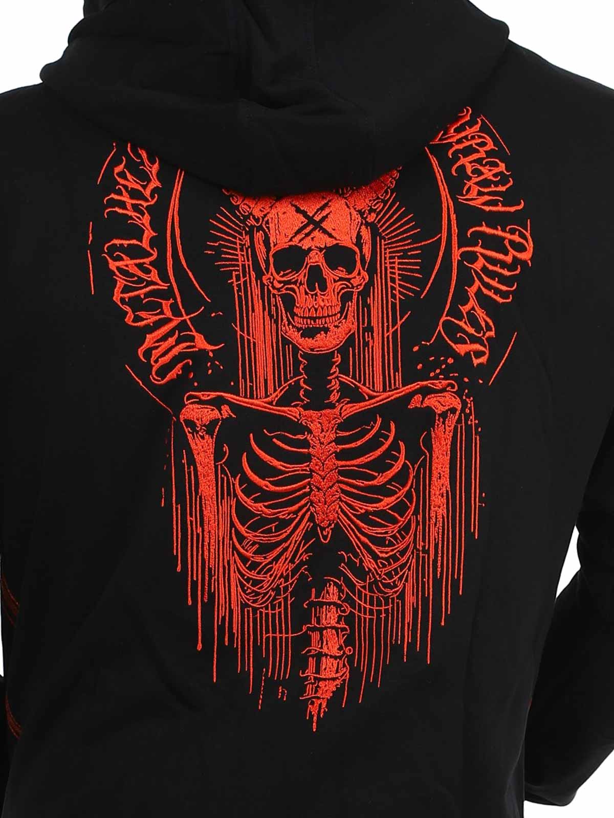 Tuff huvtröja designad med ett stort rött broderat tryck på ryggen, samt ett mindre tryck på bröstet. Den har huva med snörning och två öppna fickor på magen. Hoodien har även ett unikt motiv tryckt på insidan av huvan som verkligen sticker ut när huvan bärs upp och ger plagget en extra cool detalj.