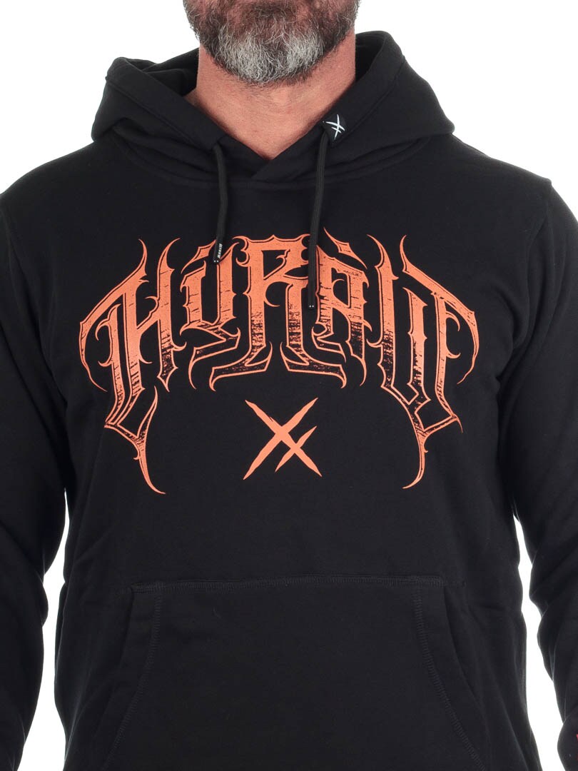 Tuff huvtröja med en klassisk magficka och justerbar snörning vid luvan, vilket gör den både praktisk och enkel att anpassa efter din stil. På ryggen finns ett markant rött tryck med logga som drar blickarna till sig, medan bröstet pryds av en stor röd logga som ger ett starkt och igenkännbar look.