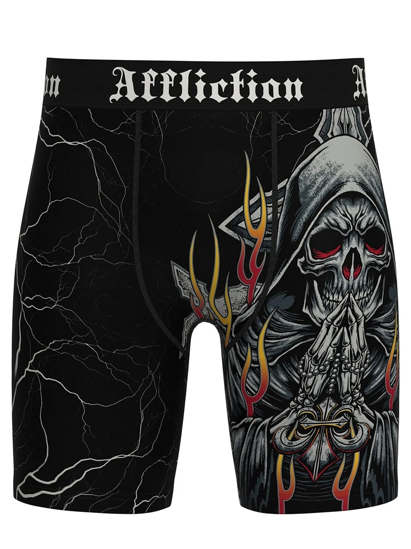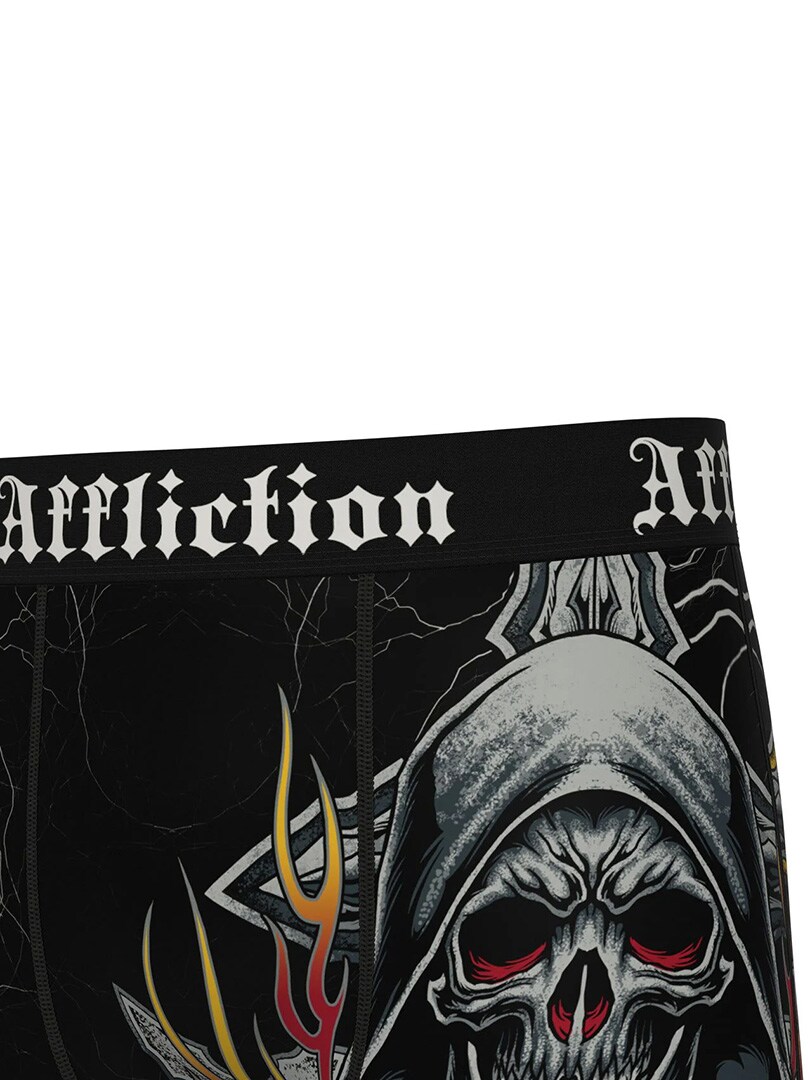 Boxershorts med döskallemotiv i klassisk Affliction-stil. Tillverkade i ett mjukt och stretchigt material som ger grym komfort hela dagen. Den breda linningen med Affliction-logga håller dem på plats och fulländar uttrycket. Perfekt för dig som vill ha underwear som sticker ut lika mycket som resten av outfiten.