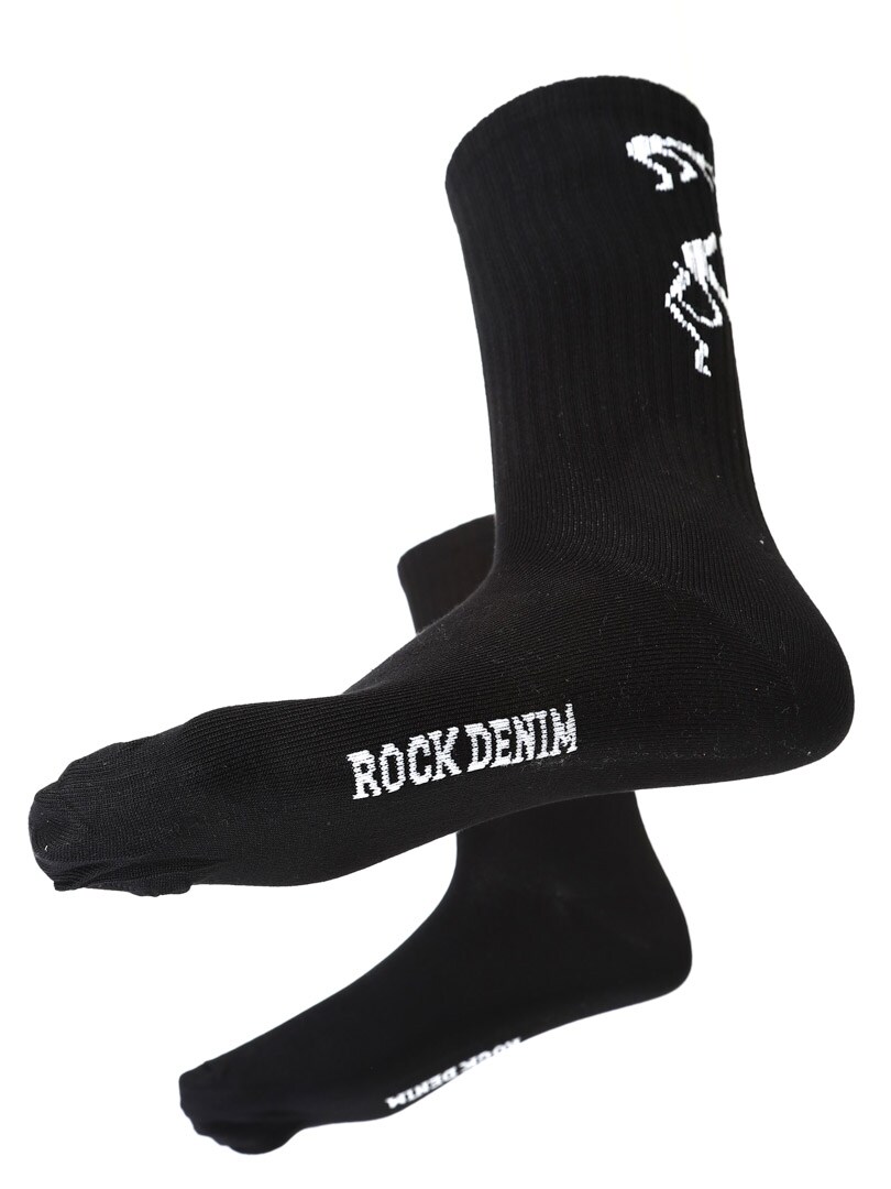 Strumporna är tillverkade i en härlig bambukvalitet, som har goda egenskaper som temperaturreglering, extra andningsförmåga och svettransporterande. Bambu känns mjukare än t.ex. bomull. "Rockdenim” i små vita bokstäver under foten. Bambuplantan har ett naturligt försvar mot bakterier, vilket innebär att den växer utan giftiga bekämpningsmedel. Det är hållbart och något vi är stolta över att kunna erbjuda!