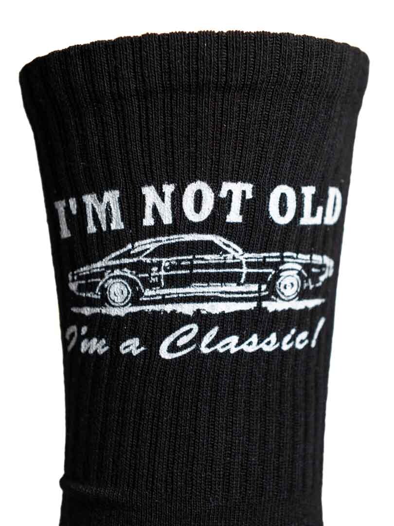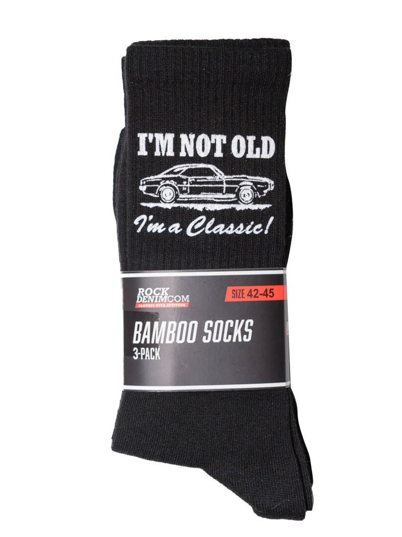 3-pack bambustrumpor i superkvalitet med texten "I'm not old! I'm a classic!"