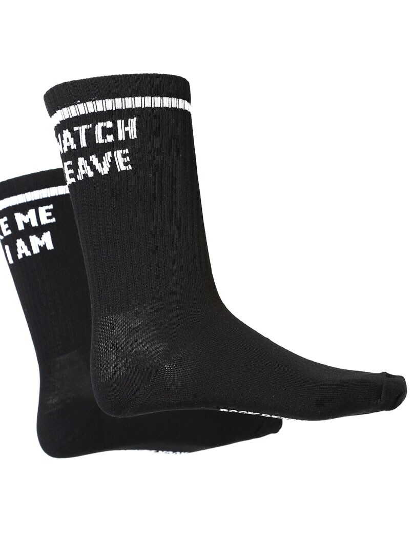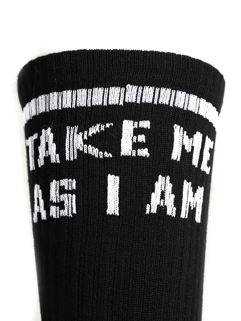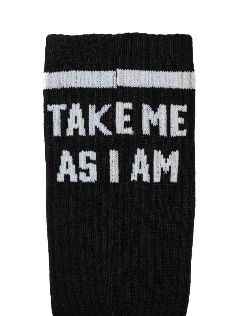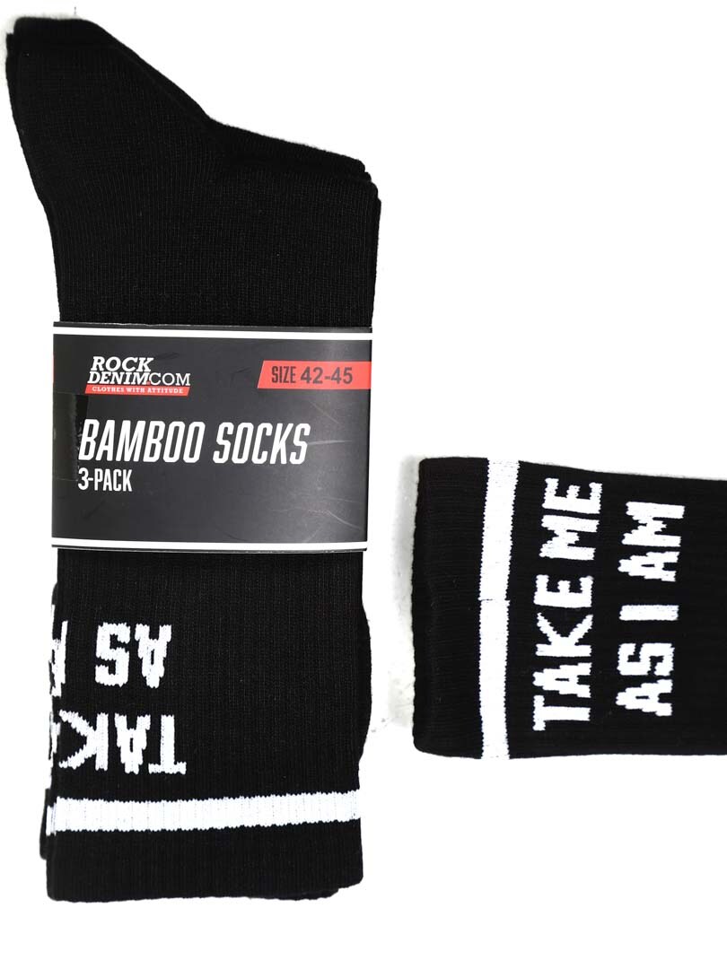 3-pack bambustrumpor i superkvalitet med texten "Take me as I am or watch me leave"