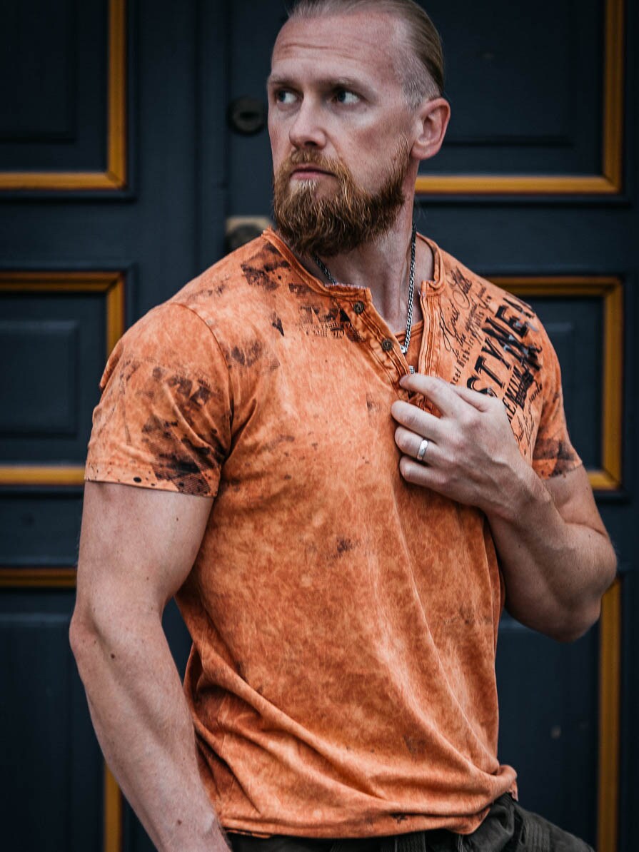 Mönstrad t-shirt detaljerad med knappar fram vid halsöppningen, en tygpatch med logga på vänster ärm och en vid linningen nertill. Tillverkad i mjuk och stretchig bomull som gör att den sitter skönt på kroppen!