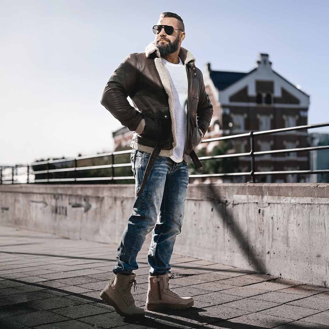 Vill du ha en look som utstrålar både styrka och stil? Denna outfit är skapad för mannen som uppskattar klassiskt hantverk med en modern twist. Genom att blanda läder, stickat och högkvalitativ denim får du en garderob som fungerar lika bra på motorcykeln som på en kväll i stan.